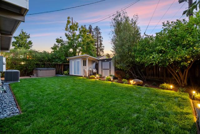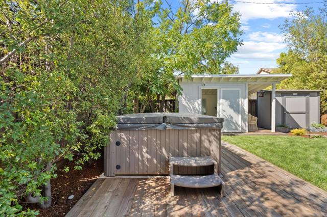 Stylish 3-bed, 2-bath midcentury modern home in the heart of Sunnyvale! The freshly painted interior & exterior create a bright, inviting atmosphere, while the updated kitchen opens seamlessly to the living room, perfect for everyday living & entertaining. The primary suite includes a full bathroom, spacious walk-in closet, and an additional closet for extra storage. Closet organizers add functionality, and the large hallway bathroom provides comfort for family & guests. Modern conveniences include central cooling and a reverse osmosis water filtration system. Outside, lush new landscaping creates a private feel, complemented by a large backyard retreat with hot tub, hidden outdoor shower, & a versatile detached structure ideal for an office or art studio. A new driveway, carport, & extra storage shed add to the homes appeal. Enjoy the vibrant neighborhood with the brand-new Corn Palace Park around the corner, plus close proximity to Ponderosa Elementary, Ponderosa Park, Sunken Gardens Golf Course, & major shopping including Costco. Easy access to Lawrence Expwy makes commuting to nearby tech hubs effortless. Don't miss the opportunity to own this midcentury modern gem in a prime Sunnyvale location!