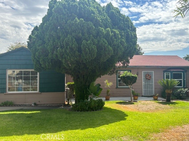 Welcome to this charming single-story home situated on a level .37-acre lot. Offering 3 bedrooms, 2 bathrooms, and 1,713 sq. ft. of living space, this property is thoughtfully designed for both comfort and versatility. The spacious kitchen boasts ample cabinetry, granite countertops, and a dedicated dining area, complemented by a formal dining room for special gatherings. The inviting living room features a cozy wood-burning fireplace, while the expansive family room provides endless possibilities—ideal for entertainment, a home office, or even a potential fourth bedroom. Step outside to your private backyard retreat with a covered patio, perfect for outdoor dining, relaxation, or hosting family and friends. The property is enhanced by a variety of fruit trees including oranges, lemons, apricots, grapefruit, grapes, and plums, allowing you to enjoy fresh fruit year-round. Additional highlights include a large driveway with space for approximately 10 vehicles, and a detached garage converted into storage with laundry hookups. The lot’s generous size offers potential for an ADU or Jr. ADU, making it an excellent investment opportunity. Conveniently located just minutes from Kaiser Permanente Hospital, shopping, Sierra Vista High School, local markets, and the 10 Freeway, with quick access to downtown Los Angeles in under 20 minutes. This home is being sold as-is and is truly a must-see to appreciate all it has to offer. Don’t miss this incredible opportunity—schedule your appointment today! The Sellers are in the process of moving and request that showings begin after the 19th.
