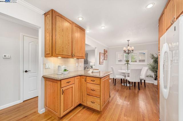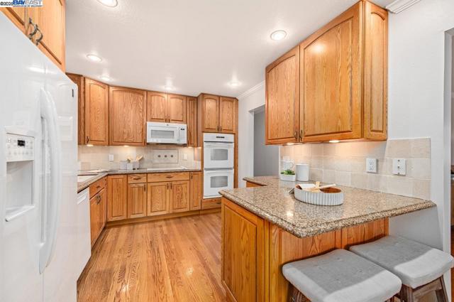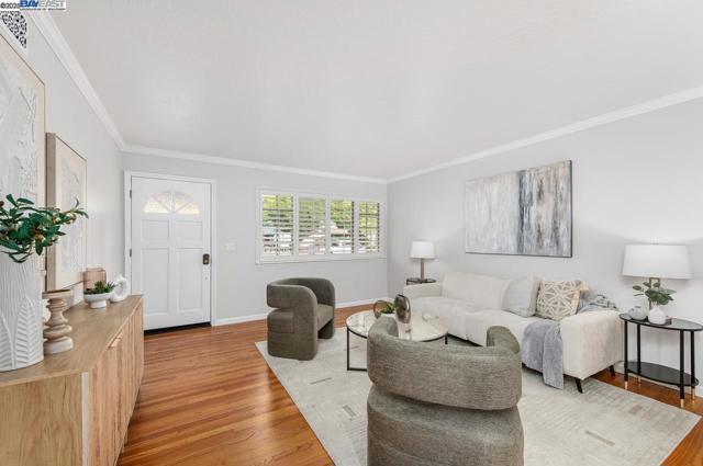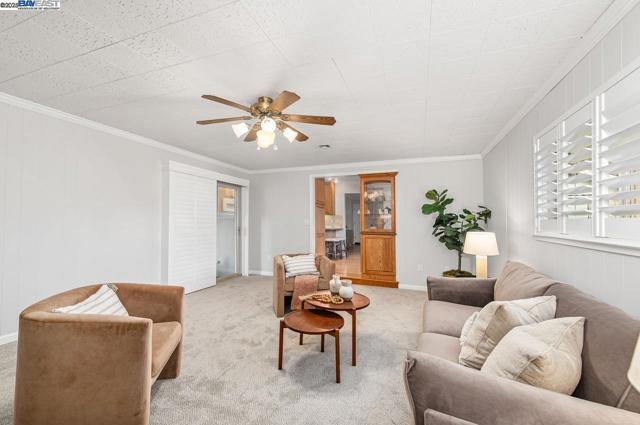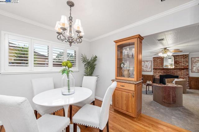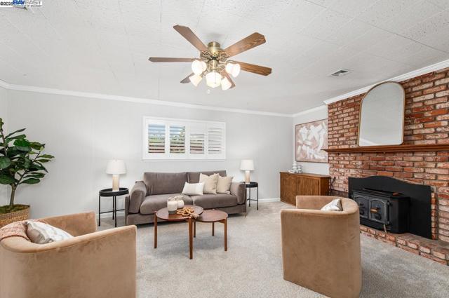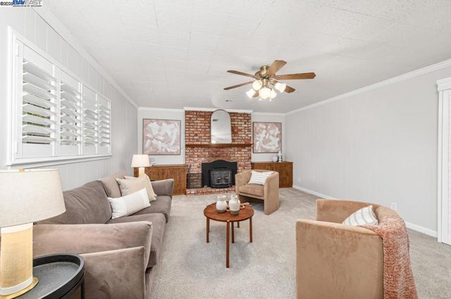 Welcome home! Charming single-story, East facing, ranch-style home in Livermore, featuring 3 bedrooms, 2 bathrooms, and 1,632 sq ft of comfortable living space. Beautiful hardwood flooring flows throughout the main living areas, while the kitchen offers solid wood cabinets, stone countertops, matching white appliances, recessed lighting, bar seating, and space for formal dining and entertaining. The inviting living room is highlighted by a brick fireplace, perfect for cozy evenings, family gatherings and events. Custom shutters add elegance, and new carpet provides seamless comfort. The spacious primary suite includes an en-suite bath and dual closets. New interior and exterior paint, newer hvac, roof, and updates. Easy maintenance yards are ideal! Located in one of Livermore’s most beloved neighborhoods, this home combines comfort and convenience with close proximity to Downtown Livermore and easy access to Hwy 84. Original owners meticulously maintained and loved home for decades and are now moving on! Home is permitted 4 bedroom but currently configured as 3 beds.
