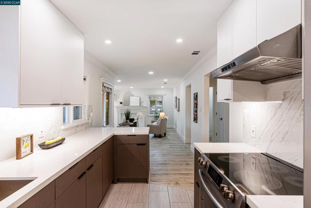 Welcome to 2049 Elinora Drive, a beautifully updated home in the heart of Pleasant Hill’s desirable Gregory Gardens neighborhood. This expanded 4-bedroom, 2-bathroom home offers approximately 1,455 sq ft of living space, thanks to a fully permitted addition that added two spacious bedrooms and a full bath. Inside, you’ll find a thoughtfully remodeled interior with a new roof and HVAC system. The light-filled living room features a cozy wood-burning fireplace and flows seamlessly to the dining area and updated kitchen. The kitchen showcases new cabinetry, quartz countertops, under-cabinet lighting, and modern appliances. New flooring throughout is complemented by recessed lighting, fresh paint inside and out, crown molding, and stylish fixtures. The finished garage with epoxy floors, built-in storage, and upgraded plumbing provides a versatile space for a home gym, workshop, or projects. Just minutes from downtown Pleasant Hill, local parks, trails, and shopping with easy access to BART and major freeways, this move-in ready home truly checks all the boxes for comfort and convenience.