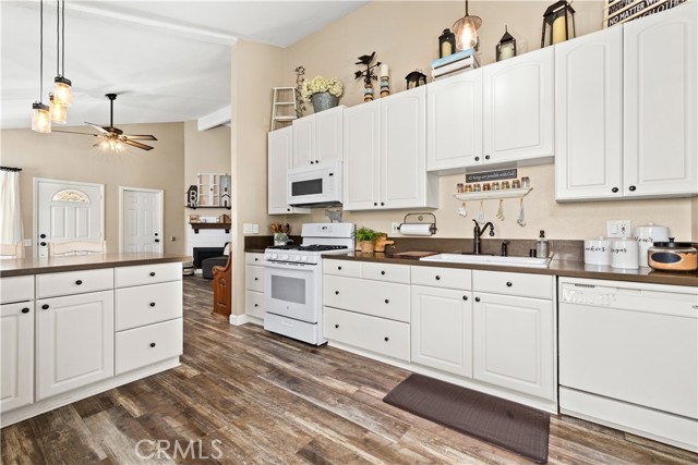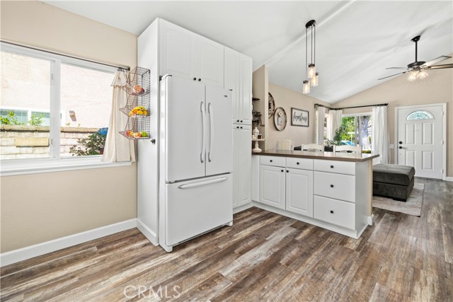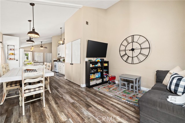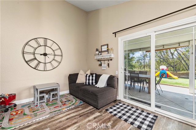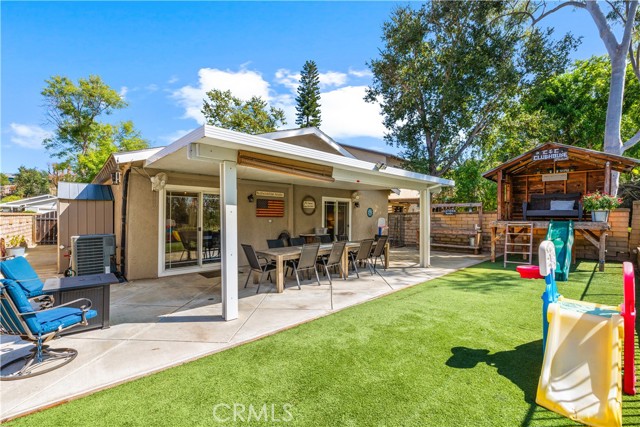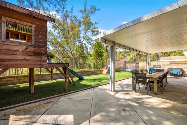 This exceptional property, located in the heart of Mission Viejo, offers both privacy and a prime setting on a spacious view lot. Upon arrival, a charming white picket fence leads to the entryway. Inside, you are welcomed by stylish vinyl plank flooring and an open-concept layout. The upgraded kitchen features white cabinetry, a breakfast bar, and an in-kitchen dining area. The family room seamlessly extends to a private backyard designed for entertaining, complete with a covered patio, custom playhouse, and stunning sunset views. Boasting four bedrooms and two full bathrooms, and includes a comfortable primary suite with a sliding door that opens directly to the back patio area. The two-car garage is currently utilized as a gym and an additional playroom, providing versatile space for family needs. Residents will also enjoy access to Mission Viejo’s premier amenities, including lake access, boat rentals, concerts, and a variety of recreational activities. The home is truly Turn Key!