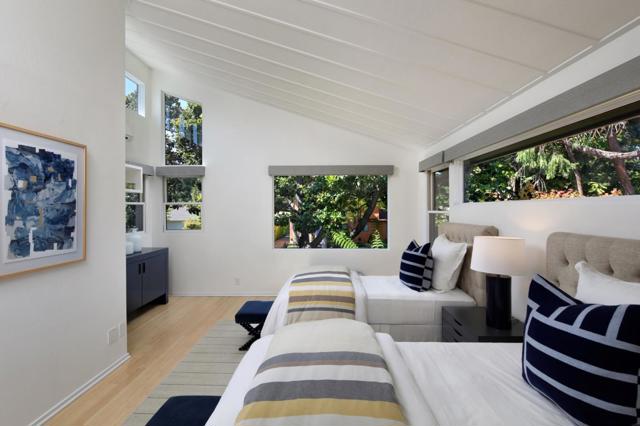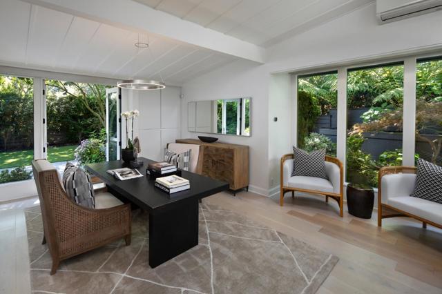 Experience elevated living at 1101 Hamilton Avenue, a masterfully reimagined Mid-Century Modern sanctuary in the heart of Palo Alto's esteemed Crescent Park. This refined residence offers three en-suite bedrooms and a breathtaking open-concept living space with soaring ceilings, abundant natural light, and seamless indoor-outdoor flow. The sleek gourmet kitchen features Wolf and Sub-Zero appliances, a Miele built-in coffee system, Swarovski crystal lighting, and a custom pantry with wine storage and laundry. Garden-facing rooms and a serene oversized flex space open to lush grounds perfect for both entertaining and quiet retreat. The upstairs primary suite indulges with custom walk-in closets, tranquil ensuite, and a private balcony. Ideally located near top-rated schools and just moments from downtown Palo Altos downtown amenities. This home blends timeless design with modern comfort in one of Palo Altos most sought-after neighborhoods.