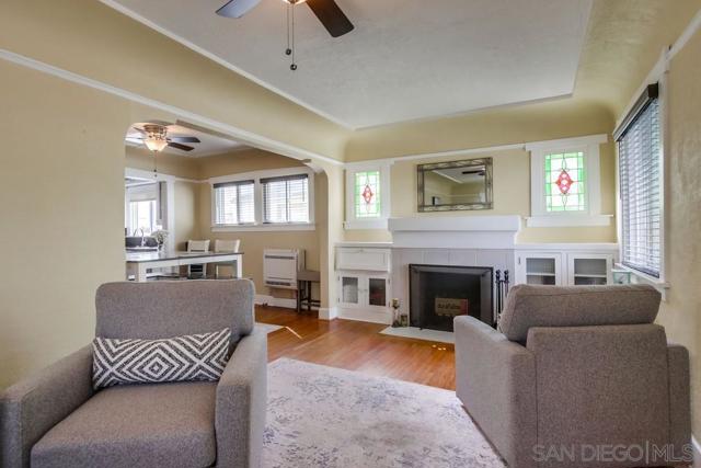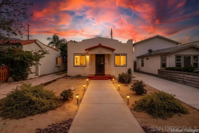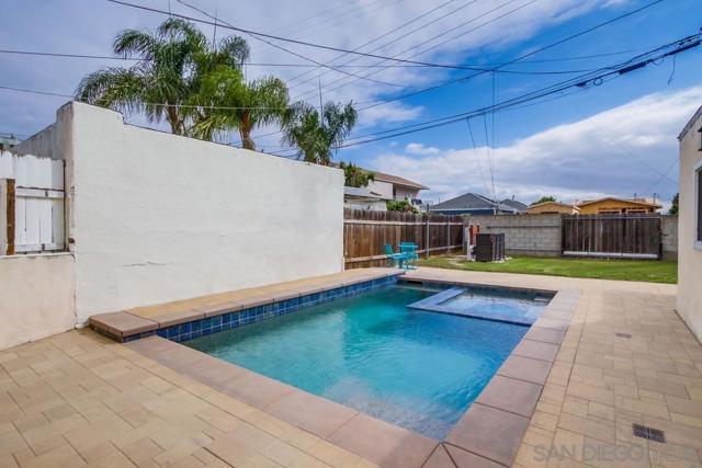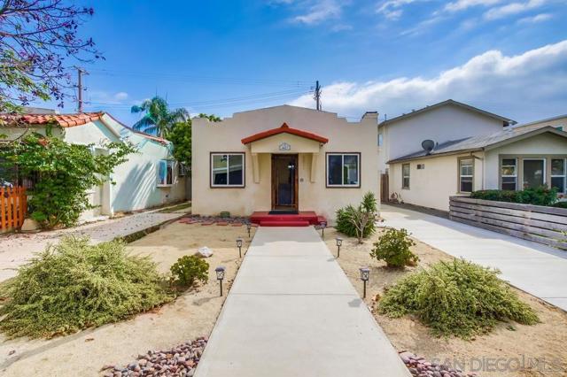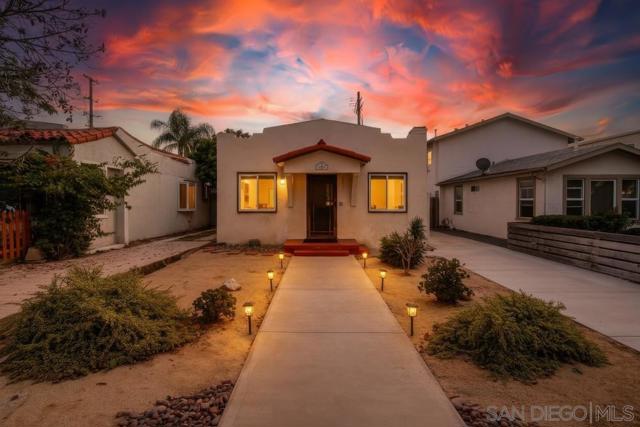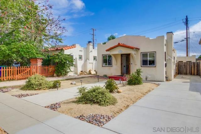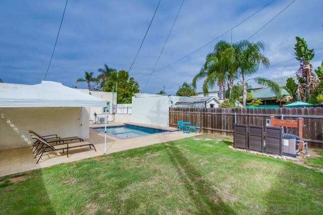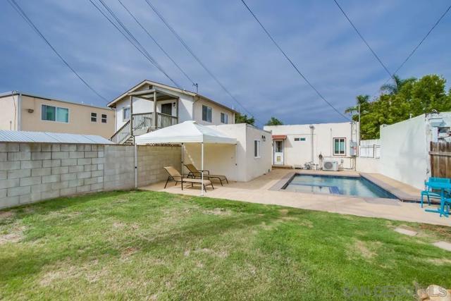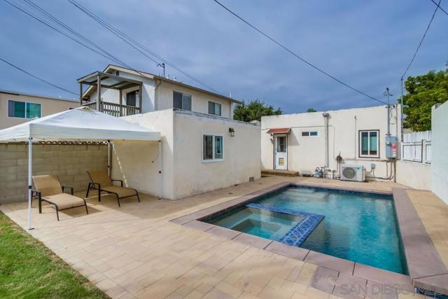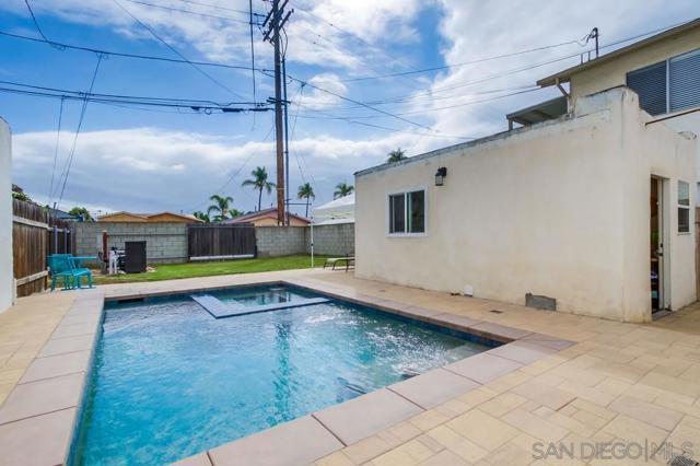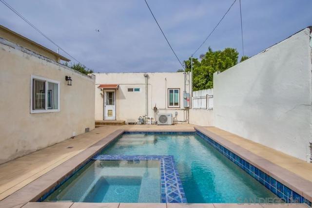 Welcome to Normal Heights lovely early century spanish style cottage with great quite location detached garage with existing electric & plumbing for possible ADU, studio or office sq. footage NOT included, large back yard, new sparkling pool & spa (2022) new pavers, grass area,back alley access new roof & paid solar (2022)new windows bali blinds (2022) ceiling fans tankless water heater & ABS plumbing (2019) new elec. panel (2022) newly remodeled bath (2022), wood burning fireplace.