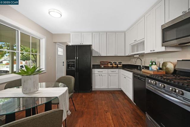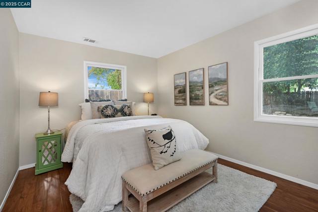 This Cape Cod Style home has charm and character. The living room has modern engineered wood floors that flow through to the lower bedrooms. The interior has been freshly painted, and the exterior recently painted too. The kitchen has attractive white cabinetry, black stone counters, a Bosch dishwasher and gas freestanding stove. There is a convenient pantry too. There are 2 bedrooms on the main level, with backyard access from the smaller bedroom which would make a great office or hobby room. The upper level & staircase have brand new plush carpeting with 2 bedrooms featuring attic storage and ceilings that enhance the character of the home. This older style home has had many improvements: the roof and gutters are approx. 4 years new, the heater & a/c are approx. 10 years old, and the front siding was replaced in 2024. The electrical panel was upgraded in 2017 and the sewer line replaced in 2008. The spacious backyard has a handy storage shed, lemon, lime and orange fruit trees, plus other shade trees perfect for those hot days. Close to the canal path, Markham Nature Park and several shopping centers makes this an ideal location.
