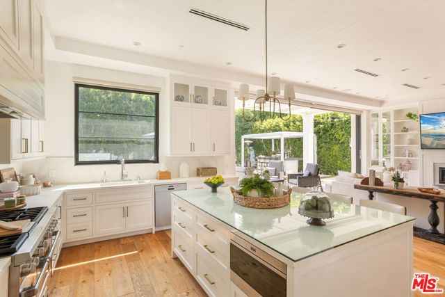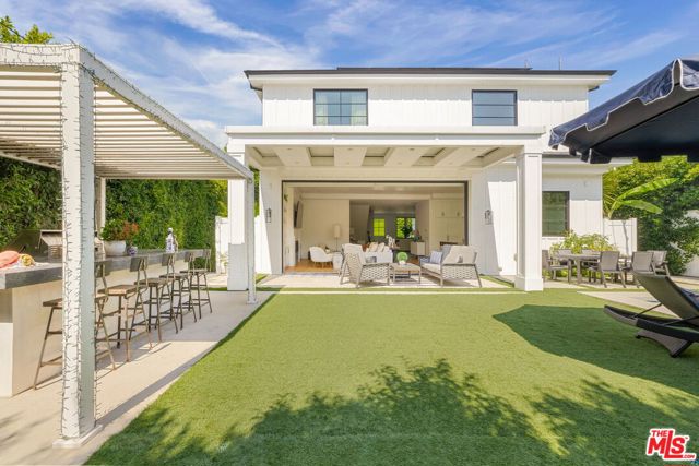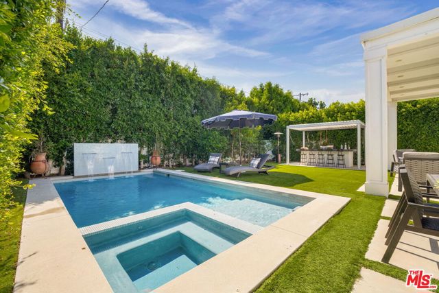 A Celebrity owned Private Westwood/Rancho Park Retreat offers Style, Scale & a Splash of Fun. Tucked behind oversized gates for maximum privacy, this near-new 2019 Traditional is equal parts sophisticated and welcoming. With 5 bedrooms, 6 bathrooms and a layout that checks every lifestyle box, this estate blends comfort with resort-style amenities including a pool with spa, water wall, and pergola-covered outdoor kitchen waiting for your first summer soiree. Step inside and dramatic 9-11 ft ceilings set the stage. A cozy living room with fireplace flows into a chic dining space crowned by French Oak ceiling detail. The family room built-ins and soaring bookshelves open seamlessly to a gourmet kitchen (LA's new cocktail lounge) featuring an oversized island, bar seating for many, Sub-Zero refrigeration, Bosch dishwasher, and Wolf appliances including an 8-burner range. A walk-in food closet and butler's pantry mean storage galore. Fleetwood doors stack and disappear, connecting indoors to a covered deck and backyard fun. Upstairs, the primary suite indulges with a spa-worthy soaking tub, steam shower, dual vanities, and a bonus enclosed porch perfect for a nursery, office, or Peloton space. Three additional en-suite bedrooms upstairs deliver style and scale. Outdoors, enjoy grilling and chilling under the pergola covered BBQ, or cannonball into the sparkling pool. Add solar panels, EV charging, a whole-house water filtration, and fruit trees galore including pomegranate, organic banana, Meyer lemon, apple, and peach trees and you've got the ultimate modern retreat. Only minutes from UCLA, Fox Studios, Rancho Park Golf Course, Westfield Century City and Beverly Hills.