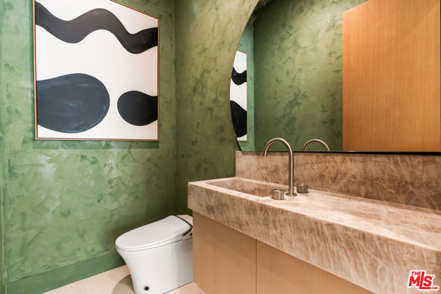 New Construction! Organic Modern and Mediterranean luxury defines this one-of-a-kind architectural showpiece in Brentwood. Behind its gates, this 6-bedroom, 5-bathroom estate showcases a pool, spa, rooftop deck, and private theater expertly blending European warmth with the clean sophistication of organic modern design. Every detail is intentional, from the handpicked natural materials to the custom finishes. An 11-foot oak pivot door opens to a soaring double-height foyer bathed in natural light from oversized skylights. Glass railings frame a sculptural floating staircase, while LED wall accents draw the eye toward serene backyard vistas. The expansive open-concept living area flows into a chef's kitchen featuring push-to-open walnut cabinetry, rare leathered Taj Mahal countertops, and a massive island seating eight. A secondary kitchen adds ease and elegance, offering a wet bar, pantry, beverage refrigerator, and built-in microwave perfect for hosting or multi-generational living. Wide-plank oak floors span the main level, while limestone brings timeless elegance to the baths. Two 20-foot sliders reveal a resort-worthy yard with a deck, outdoor kitchen, and shimmering pool. The driveway fits four cars, complemented by a two-car garage with EV-ready wiring. Two main-level bedrooms suit guests or a lifestyle wing with theater, gym, or office. Upstairs, the primary suite is a private escape with a custom closet, spa-like bath, and balcony overlooking lush landscaping. Four additional bedrooms, three baths, and 700 sq ft of patio space complete the second floor. A 2,000 sq ft rooftop deck crowns the home, offering panoramic views from the Santa Monica Mountains to Downtown LA. Smart home features include Cat 6 wiring, whole-house audio, surround sound, three-zone climate control, and rooftop projection capabilities. All this, moments from Brentwood's finest dining, shopping, and the farmers market an extraordinary retreat for elevated living.