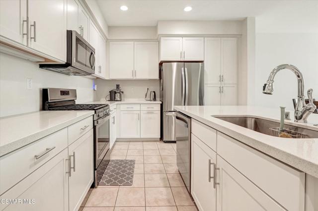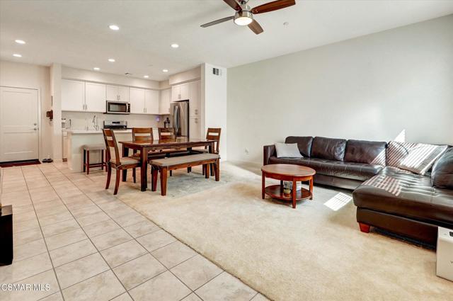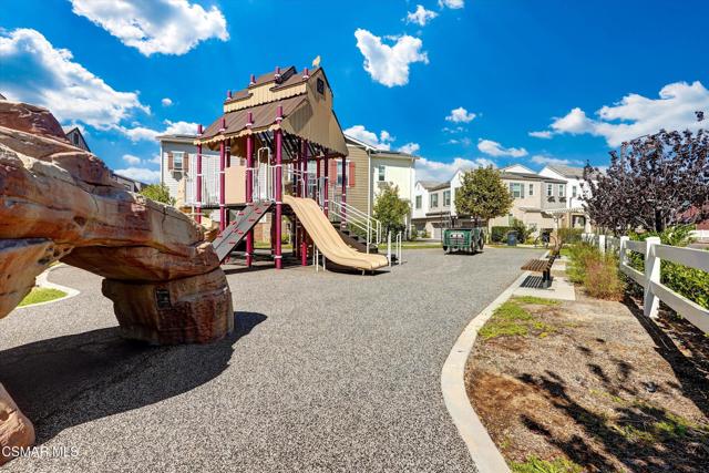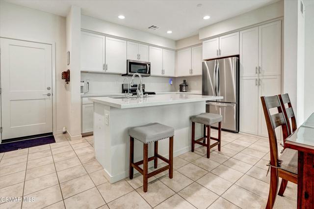 Welcome to this elegantly appointed townhome, offering 3 bedrooms and 2.5 baths, ideally located within The Westerly--one of Simi Valley's most sought-after and newer communities.A charming entryway leads into a bright and open living area, highlighted by soaring 9-foot ceilings, expansive windows, a convenient powder room, and a thoughtfully placed storage closet. At the heart of the home, the gourmet kitchen serves as a stunning focal point--perfect for both daily living and entertaining. Appointed with sleek quartz countertops, designer cabinetry, upgraded stainless steel appliances, a generous center island with breakfast bar seating, and an adjacent dining space, the kitchen seamlessly integrates with the inviting living room for effortless flow.Upstairs, the private primary suite provides a serene retreat, featuring high ceilings, a spacious walk-in closet, dual vanities, and an oversized walk-in shower. Two additional bedrooms, equally light-filled with elevated ceilings, share a beautifully designed secondary bath with dual sinks and a tub/shower combination. A conveniently located upstairs laundry closet enhances everyday functionality.Additional upgrades include dual-paned windows, recessed lighting, ceiling fans, a whole-house(including kitchen sink) water filtration and conditioning system, TV connections in each room, exterior garage door pin for easy access and central heating and air. Outdoor living is equally appealing with an enclosed front patio, while a direct-access two-car garage ensures ease and convenience.Residents of The Westerly enjoy access to an array of lifestyle amenities, including a sparkling pool, fire pit lounge, bocce ball court, picnic area, rose garden, dog park, and children's play area. Ideally situated near award-winning schools, scenic parks, and premier shopping destinations, this home blends comfort, sophistication, and modern convenience in one exceptional offering.
