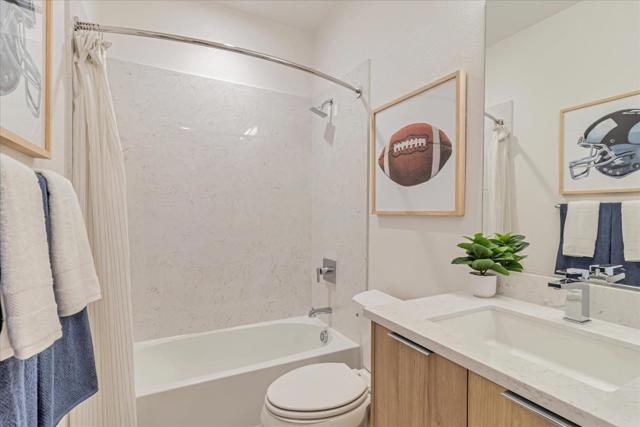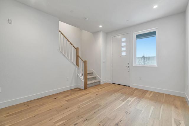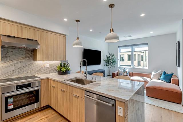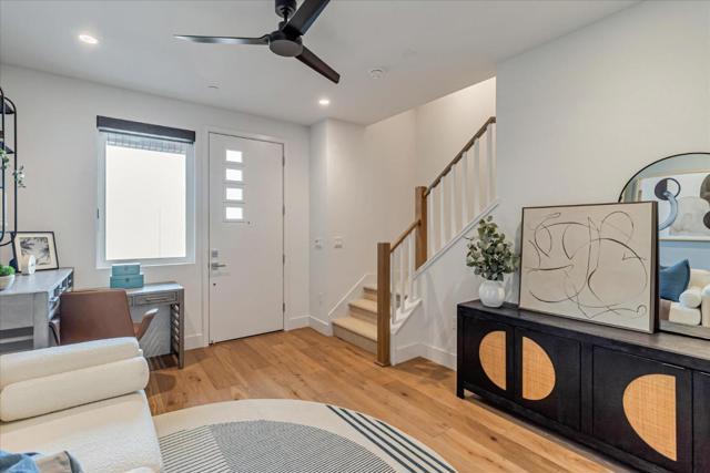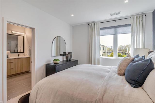 Residence 3 offers 3 bedrooms, a ground-floor den, and 3 full bathrooms ideal for families, guests, or a home office. The open-concept main level features a kitchen, dining area, and family room that flow seamlessly together. The kitchen is appointed with Bosch stainless steel appliances, walk-in pantry, quartz countertops, and shaker-style white cabinets. Engineered wood floors on the first and second levels add warmth and elegance. The top-floor primary suite includes a walk-in closet and en-suite bathroom, providing a private retreat. Additional bedroom and a full bath offer flexibility. Enjoy outdoor living with a private patio and deck. Discover 28Fifty, a new community of 48 modern townhomes by SummerHill Homes in desirable Midtown Palo Alto. Community amenities include access to a central park area for gatherings and relaxation. Conveniently located near major employers, highways, and the Dumbarton Bridge, and less than 3 miles from downtown Palo Alto. Within reach of top-ranked schools. Quick move-in!