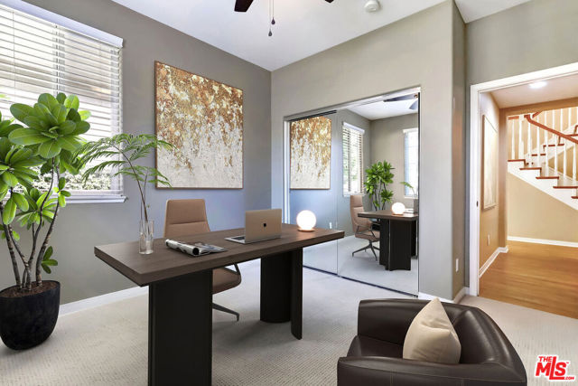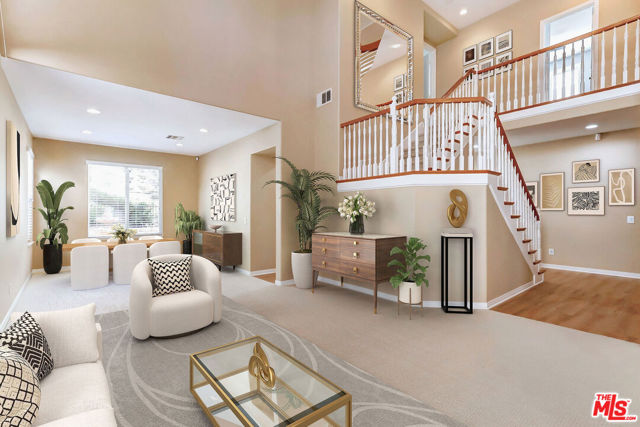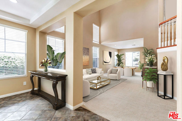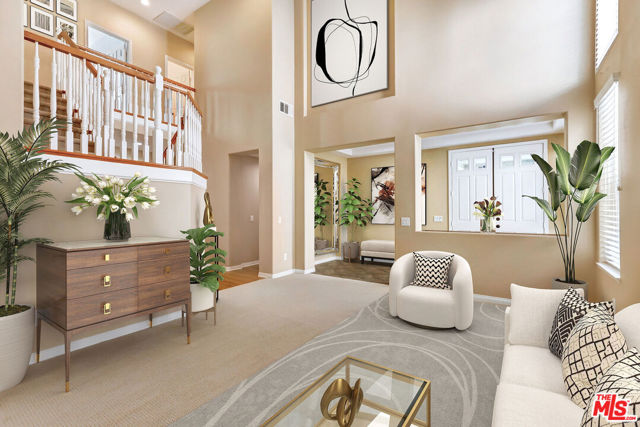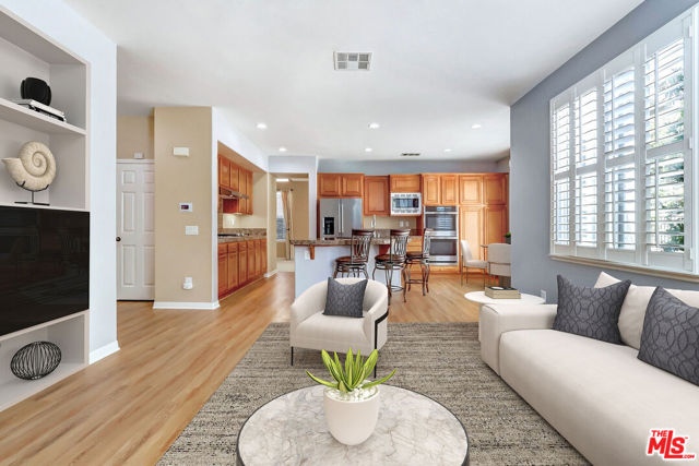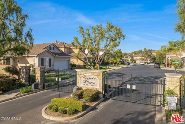 Beautiful single-family home in the gated community of Alterra at Serenata in Moorpark! Constructed in 2001, this 4 bedroom, 3 bath home is over 2500 square feet of living space. 25ft, two-story high ceilings in the living room fill the room with light and a formal dining room overlooks the yard. Fresh paint inside and out. The kitchen includes granite counters, engineered wood floors, double oven, new stainless steel appliances, large center island w/bar seating, lots of cabinets and storage as well as a breakfast area with an adjacent family room w/fireplace & new flooring throughout. There is a full bath and bedroom downstairs. Upstairs, the primary suite boasts views of the yard, and a luxurious bath with jetted tub, dual sinks, tile floors, extra-large shower & two walk-in closets. Two additional bedrooms with a hall bathroom finishes out the sleeping rooms upstairs plus a laundry room with sink and cabinet storage is conveniently located on the second floor. Private rear yard with open patio, fountain, lush landscaping, herb garden and mature fruit trees (mango, pomegranate, Asian pear, orange, tangerine, peach, guava, avocado, lemon and lime). Saltless water conditioner system. Hard wired for ADT alarm. 3-car direct access garage with epoxy flooring and custom storage cabinets. The community is next to Miller Park, near award winning schools (across the street from Mesa Verde Middle School), hiking trails and walking distance to restaurants, shopping and transportation (an MCT bus stop is conveniently located right outside the gate).