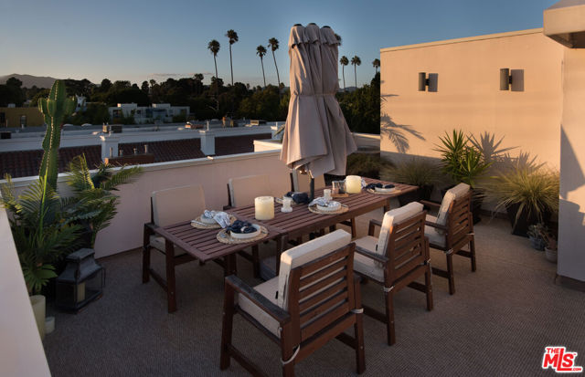 Crowned by panoramic ocean, mountain, and city views from a private 400 sq ft rooftop deck, this contemporary Santa Monica end-unit townhome sits just a half block from Montana Avenue's boutiques and cafs. Multi-level living blends space, light, and luxe upgrades: soaring ceilings, Italian-oak floors, and walls of windows that invite sunshine and breezes into every room. Arrive via a gated complex on a quiet, upscale street. A palm- and succulent-lined breezeway leads to the private end unit.The location is exceptionally walkable: steps to 100+ shops and restaurants on Montana Ave. Within a block: library, coffee shops, salons, and multiple eateries. Three blocks to Whole Foods, Target, & the Aero Theater. Minutes to the beach and Santa Monica Pier. Perched high on 17th Street, the elevation delivers blue-water views from bedrooms and roof deck, with natural cross-breezes throughout.In the spa-level primary bath, indulge in a steam shower or switch to the rain head and five body sprays. Customizable lighting sets the mood, while a shower window frames Catalina on clear days. The updated kitchen features Spanish subway tile, white quartz counters, and matte-black smart appliances, including a French-door oven with LED touchscreen. The dramatic living room soars with 17 ft ceilings and a custom built-in with integrated lighting plus a smooth-rolling 10 ft library ladder. A guest BR sits on the second level beside a reading or office nook. The primary suite and another bedroom are on the third level. The 1st-floor dining room opens to a porch, perfect for a bistro breakfast, herb garden, or outdoor grill.Upgrades abound: sleek screwless switch plates, in-wall USB outlets, double handrails, soft-close cabinetry with bamboo organizers, three recessed outlets for flush TVs, double-dishwashers at both kitchen and roofdeck level. Recent updates include high-capacity water heater, oven, range, microwave, dishwashers, garage opener, and shower fixtures.The show-stopping roof deck is an entertainer's dream. With gas, water, electricity, plus a kitchenette with sink, refrigerator, and dishwasher, it's made for sunset dinners, cabana lounging, game days, or mornings watching hawks ride the updrafts. A rare 400 sqft basement bonus room offers flexible use: game room, playroom, gym, or theater. Semi-subterranean cinder-block construction ensures excellent sound isolation and complete darkness. Pre-wired for surround sound. In the corner is a small office with acoustic insulation and built-in California Closets storage.Technology and comfort converge in the turnkey smart-home package with 100+ Philips Hue lights. All smart enabled: 6 security cameras, doorbell, deadbolt, garage door, thermostat, 3 HEPA air purifiers, 11 voice assistants, and motion sensors. Devices are pre-connected to Apple HomeKit and ready to sync with your iPhone. Control by voice or the included, pre-programmed iPad. Cue whole-home music, dim lights, or adjust climate by voice. Pre-set automations power down lights, music, and HVAC when unoccupied. Each floor has an Ethernet jack, and an Orbi mesh WiFi system with seven satellites delivers gigabit speeds. Prefer low tech? Property can be delivered with smart devices removed. Option to purchase furnished for a seamless move-in. A rare blend of modern design, luxury amenities, and postcard-worthy views, this home captures the essence of Santa Monica beach-city living from sunrise breezes to Pacific-pink sunsets.