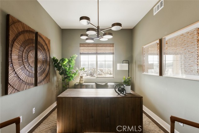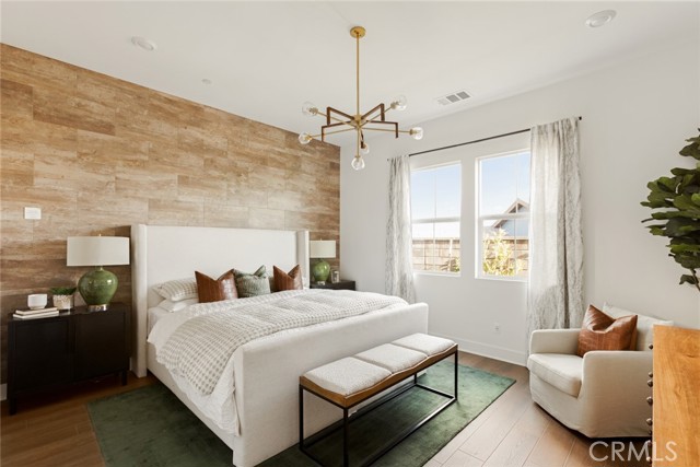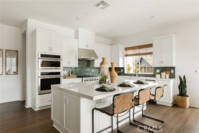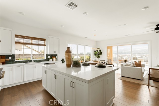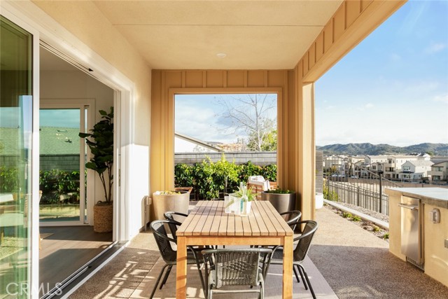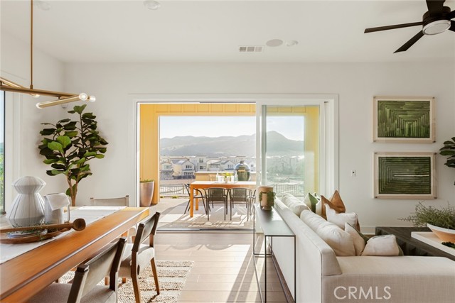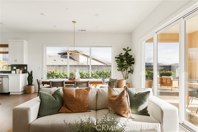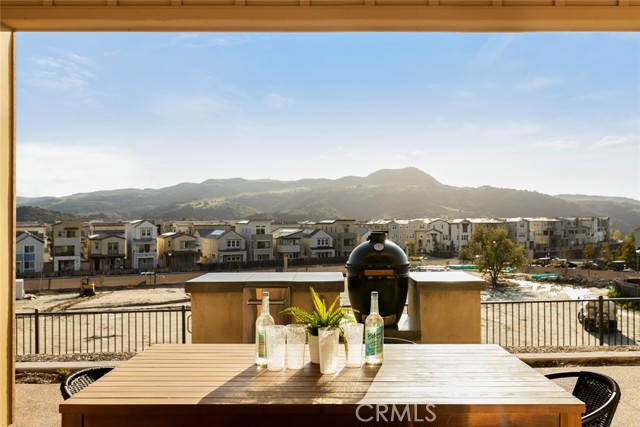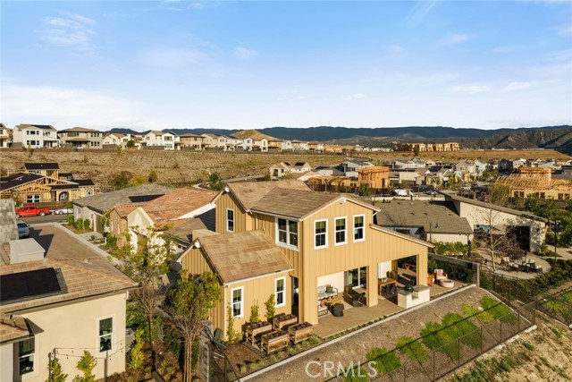 Overlooking the beautiful Boulder Pond park from its premium elevated setting in Rancho Mission Viejo's Village of Rienda, this new, never-lived-in before former model home has been reserved in it's pristine new condition, complete with a full complement of upscale designer furnishings and custom upgrades. A premium location in the 55-and-better Pearl at Gavilan neighborhood is enhanced by panoramic mountain and evening-light views, and a wraparound backyard with fire-pit, covered patio, and a custom built-in bar with smoker and ice maker. Light, open and airy, the three-bedroom, three- and one-half-bath design extends approximately 2,257 square feet and includes a main-level den, and a large second-floor bonus room and closet that can easily be utilized as a bedroom. The primary suite is located on the first level for the ultimate in convenience and hosts a generous walk-in closet, and a lux bath with clerestory window, a quartz-topped vanity with two sinks, marble tile surrounds, and a walk-in shower. Live the cherished indoor/outdoor lifestyle for which Southern California is renowned in a seamless living and dining space that opens via two walls of slide-away glass doors to gorgeous views and the inviting backyard. Anchored by a large island with seating, the kitchen is destined to take center stage when entertaining friends and neighbors. Quartz countertops and a full tile backsplash harmonize with white Shaker cabinetry, a pantry, and stainless steel GE Monogram appliances including a built-in refrigerator and six-burner cooktop. High ceilings with flush-mount speakers, wood-style vinyl flooring, contemporary lighting fixtures, designer wall and window treatments, interior laundry, solar power and an attached two-car garage add to the home's long list of impressive appointments. Pearl presents a resort setting where residents enjoy exclusive access to a pool and spa, clubhouse and outdoor kitchen. Located in the heart of Rancho Mission Viejo, the Village of Rienda showcases a sports club, scenic trails, a dog park, tennis and pickleball courts, and so much more. Shopping centers, preferred dining experiences, downtown San Juan Capistrano, Dana Point Harbor and miles of beaches are moments from home.