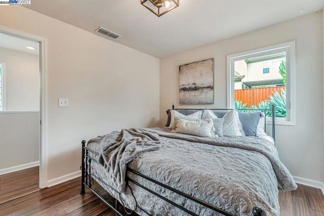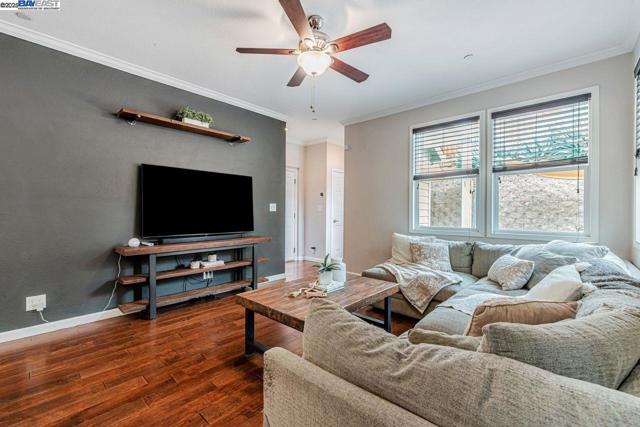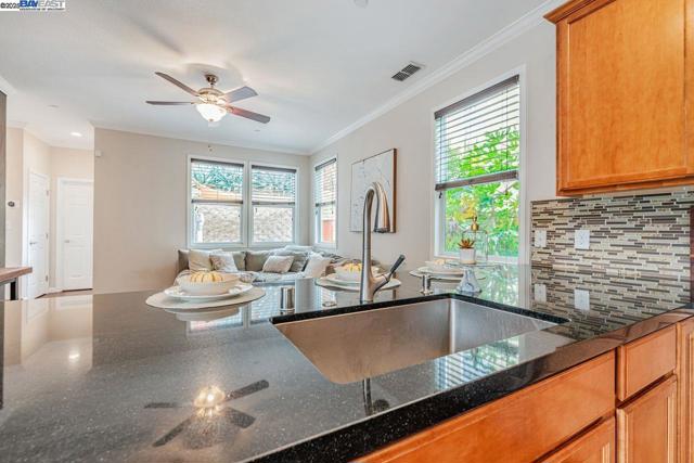 This charming 4 bed, 2.5 bath home is just under 2000 sqft, ideally situated near historic downtown Martinez. Built in 2014, this two-story residence boasts crown molding throughout, natural light, and modern amenities including updated kitchen, stainless steel appliances, quartz countertops, and a tankless water heater, The first floor features a spacious media room, dining area, custom bar, and modern kitchen with an eat-in bar that seamlessly flows into the family room, creating an ideal space for entertaining. All bedrooms, including the primary suite, and office nook are located on the second story, as well as the spacious laundry room, providing privacy and comfort. Additional highlights include a spacious garage featuring built-in cabinets, work benches, epoxy flooring, and ample storage. The low maintenance yard has built in shades, a fire pit, a dog run, and ample space for dining alfresco!! This home combines contemporary convenience with a prime location, making it a perfect fit for modern living with no HOA dues!!