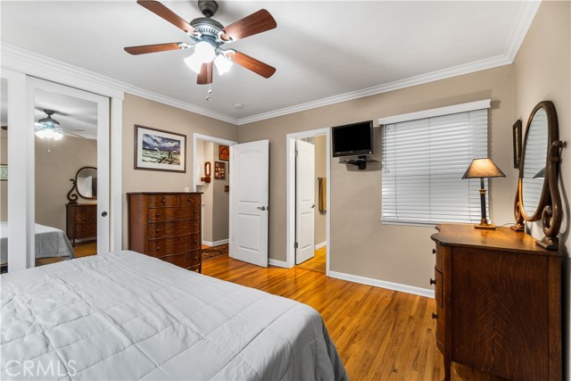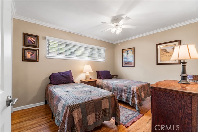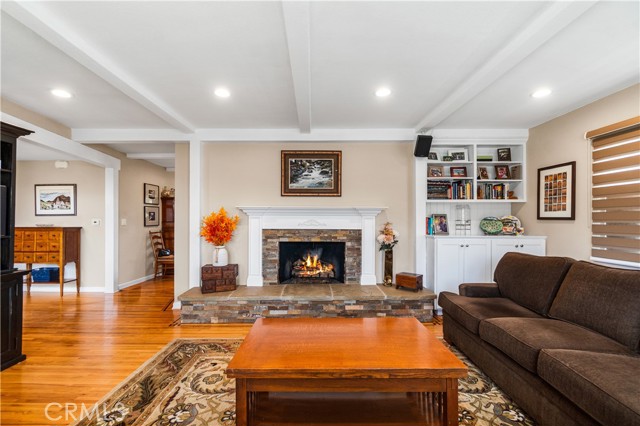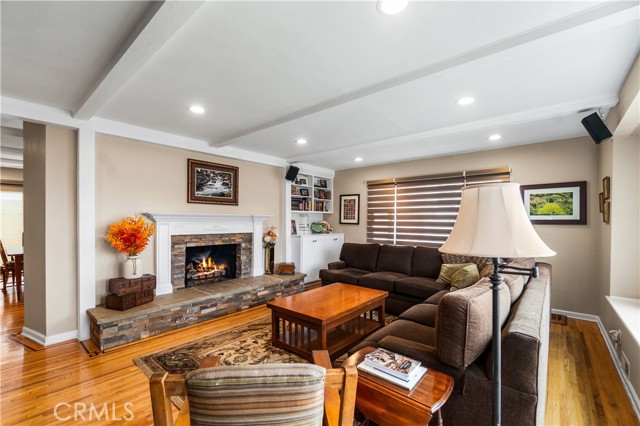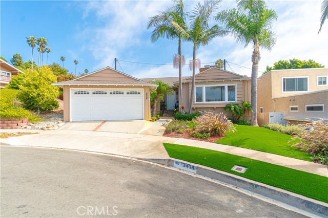 Located on a peaceful cul-de-sac in Lower South Shores, this beautifully maintained 3-bedroom, 2-bath home offers 1,608 sq ft of comfortable living with ocean and Catalina views. A welcoming entryway leads to the spacious living room, dining area, and a hallway connecting the bedrooms and bathrooms. The living room features large windows that capture the ocean view, a cozy fireplace, and built-in cabinetry. The kitchen is equipped with granite countertops, stainless steel appliances, abundant storage, and a breakfast bar that connects the dining room into the kitchen. Both the dining room and kitchen overlook the lush backyard, with a sliding glass door from the dining room offering easy access outside. Hardwood floors in beautiful condition run throughout the main living areas, while both bathrooms are finished with granite countertops, tile flooring, and tiled showers. The primary suite includes its own ensuite bathroom for added privacy. The private, walled-in backyard is a true oasis, complete with a large stone patio, turf lawn, and a mini orchard with fruit trees and a magnolia. The low-maintenance front yard also features turf landscaping. The two-car garage includes a washer, dryer, and extra refrigerators, with convenient access just outside the front door. This is a rare opportunity to enjoy coastal living in one of San Pedro’s most desirable neighborhoods.