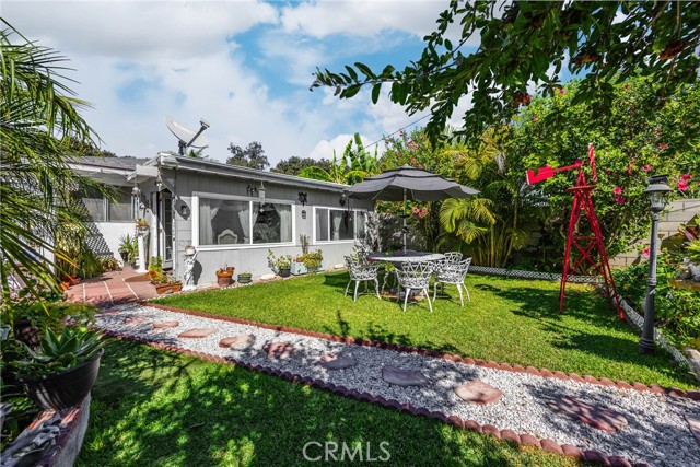 Charming Remodeled Home with ADU in the Heart of Santa Ana! This beautifully updated property, offering the perfect blend of character, comfort, flexibility, and income potential, has been thoughtfully remodeled to feature a main residence and a fully equipped ADU (Accessory Dwelling Unit) under one roof, each with its own address and separate electrical meter, all all on a cul-de-sac in the vibrant center of Santa Ana! The main house boasts two spacious bedrooms plus a bonus expansive room, about 300 additional square feet, currently used as third bedroom, created by enclosing the patio and with direct access to the lush backyard. Inside the main home, you'll find gleaming oak hardwood floors, a warm and inviting dining room with gas fireplace, a cozy carpeted living room, and a remodeled kitchen complete with quartz countertops, farmhouse sink, glass-front cabinets, and a stainless steel range, a perfect blend of style and function. The ADU, located at 412 1/2 E Camile, offers its own private living experience, approximately 750 square feet (currently in the square footage), with a great room complete with a kitchen, living room, and dining area. Additionally, it has a bedroom and a remodeled bathroom, its own electric meter, furnace, and in-unit laundry. Currently accessible through both its own side entrance and the main house, it can easily be made entirely private with a simple wall closure. The ADU also enjoys its own fenced patio, offering privacy and a peaceful outdoor retreat. All this about the house, now to the amazingly lush backyard! Step outside into an oasis-like garden filled with colorful flowers, multiple patios, and a delightful variety of fruit trees—including lemon, strawberry-guava, orange, and apple. This enchanting outdoor space provides the perfect escape and a beautiful setting for entertaining guests. Centrally located, Downtown Santa Ana with its fabulous restaurants, events, and nightlife are just a few minutes away! Whether you're looking for multi-generational living, rental income, or simply a home with extraordinary flexibility, this Santa Ana gem offers it all!