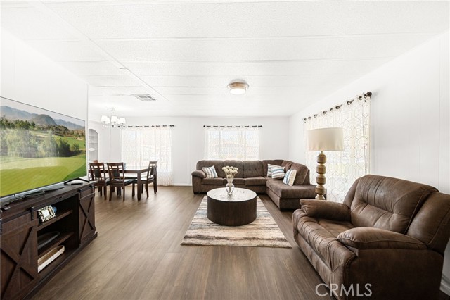 Welcome to The Farm in Wildomar. This single-story home offers an open and spacious floor plan with no-stairs entry. Inside features 2 bedrooms, 2 baths with a bright and airy layout, a super cute wet bar and plenty of space to gather. Relax on the covered front porch with your morning coffee or unwind in the enclosed sunroom patio. The Primary bedroom has 2 closets. The backyard is perfect for entertaining and provides direct access to the community orchard where you can pick your fill of fresh oranges, grapefruits, and other citrus fruits right from the trees. A detached 2-car garage and extra-long driveway offer abundant parking and storage options. Recent updates include a new AC system, newer flooring, and new water heater. Conveniently located between the 215 and 15 freeways, this home has plenty of room for expansion. This community offers plenty of amazing panoramic views as you drive around throughout. As a resident of The Farm, you’ll have access to unmatched amenities: 600 acres of open space & walking trails, 38 acres of citrus groves, 3 sparkling pools & 2 relaxing spas, Catch-and-release fishing pond, Amphitheater, a library, sports fields, basketball & tennis courts, vollyball courts 2 RV storage areas, picnic spots, playgrounds and a small community hall for rental use for the owners only. This is more than just a home—it’s a lifestyle filled with nature, recreation, and community. Low HOA and Low Taxes