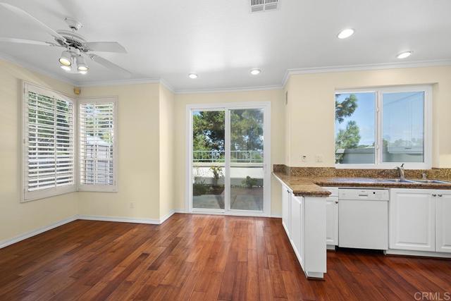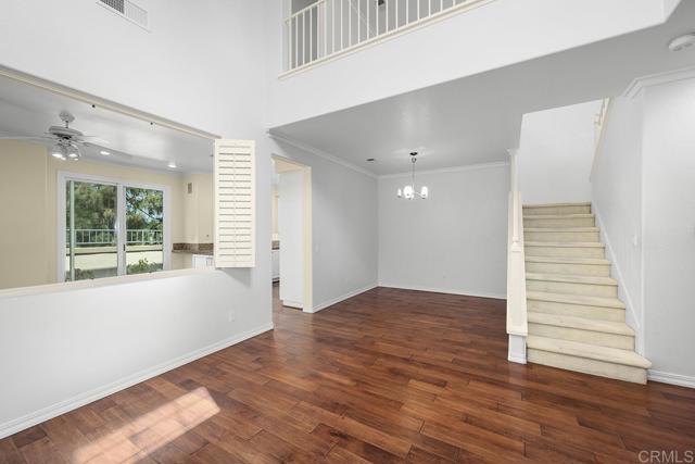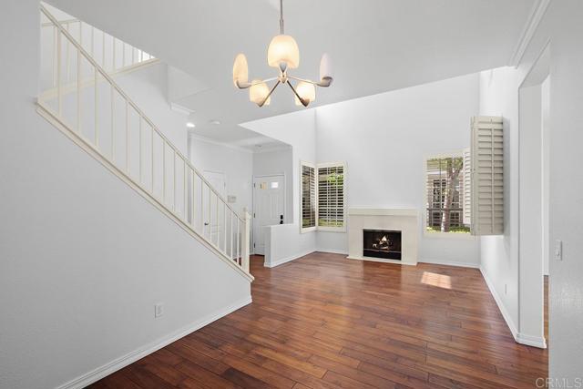 Welcome to this beautifully updated 3-bed, 2.5-bath townhome in the heart of Carmel Valley. Featuring vaulted ceilings, hardwood floors, plantation shutters, and an open floor plan filled with natural light, this home is ready for a new owner to add their finishing touches. The kitchen offers white cabinetry, and flows seamlessly into the dining and living areas with a cozy fireplace. Upstairs includes a versatile loft perfect for an office or playroom, plus a spacious primary suite and 2 other bedrooms. Enjoy a private backyard with peaceful views, an attached 2-car garage, and community amenities with low HOA. GREAT location in Del Mar Highlands. Close to all kinds of shops, restaurants and many beach communities.