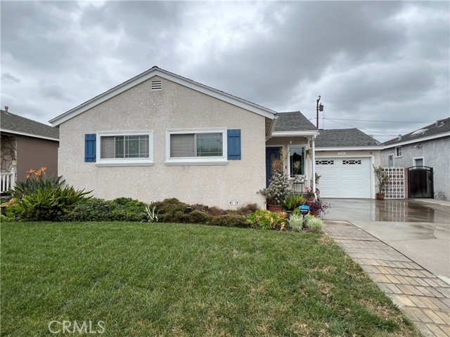 Turnkey Family Retreat in a Prime Location! Welcome to this impeccably maintained and fully furnished 3-bedroom, 2-bathroom residence, thoughtfully designed for modern comfort and convenience. Upon entry, you’re welcomed by an open-concept floor plan complemented by gleaming hardwood floors that flow seamlessly through the main living areas. A versatile bonus room, finished with durable laminate flooring, offers flexible use as a home office, fitness space, or guest suite. The kitchen features updated granite countertops and modern appliances, while both bathrooms have been tastefully renovated with sleek ceramic tile flooring for a sophisticated touch. The exterior boasts enhanced neighborhood appeal with a professionally landscaped front yard, maintained by an automated sprinkler system. The private backyard offers a serene retreat featuring a hardscape patio, built-in barbecue, and low-maintenance drip irrigation—perfect for outdoor entertaining. Located in a desirable neighborhood within the Bellflower Unified School District, this home is conveniently close to top-rated schools and just minutes from Lakewood Mall. Additional amenities include central heating and air conditioning, ensuring year-round comfort.