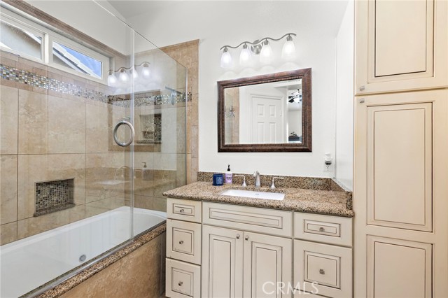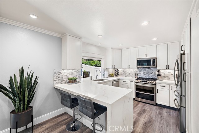 Welcome to 8 Goldmine, a beautifully upgraded residence located in the desirable Wagon Wheel community of Trabuco Canyon. This 3-bedroom, 2.5-bath home also features a spacious loft addition—currently enjoyed as a bonus room and office—that offers the flexibility to be converted into a 4th bedroom and additional bathroom. Inside, the home has been thoughtfully remodeled with today’s most sought-after upgrades. The newly renovated kitchen showcases quartz countertops with a waterfall edge peninsula, custom cabinetry, and high-end LG appliances, creating a perfect blend of style and function. Additional improvements include a full PEX repipe, alkaline water system, solar system, new windows, automated window shades, epoxy garage floor, and luxury vinyl plank flooring throughout for a modern and low-maintenance lifestyle. The outdoor space is designed for entertaining and everyday enjoyment, featuring a covered patio ideal for grilling and dining, along with beautifully landscaped grounds enhanced by pavers, flagstone, and low-maintenance turf. This move-in ready home combines comfort, convenience, and modern upgrades in one of Wagon Wheel’s most inviting neighborhoods—close to parks, trails, and award-winning schools including nearby Tesoro High School—all while being just minutes from Rancho Santa Margarita’s shops, dining, and amenities.