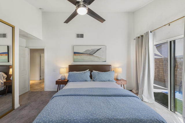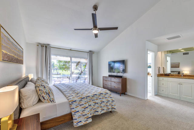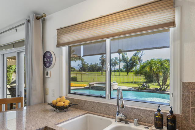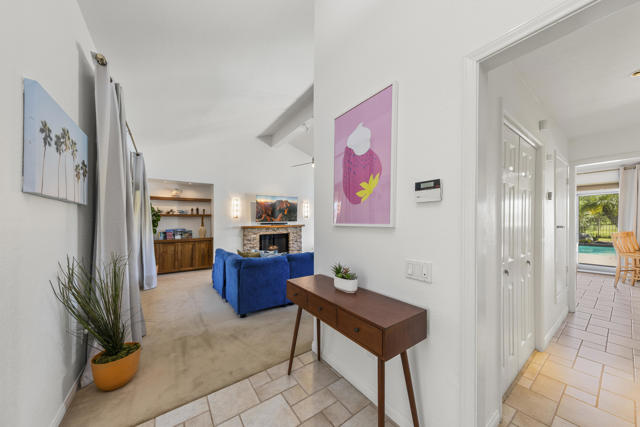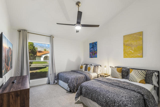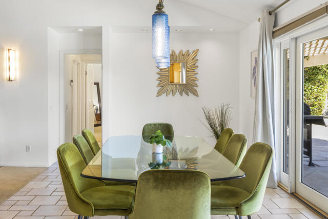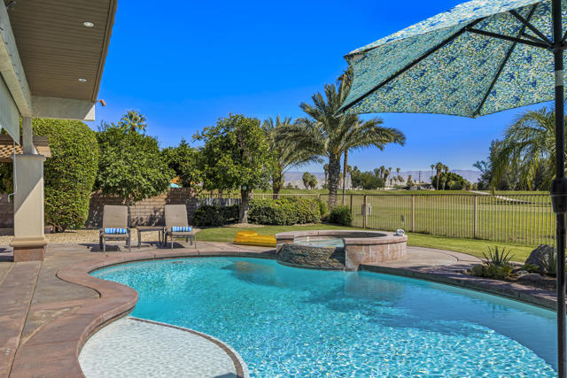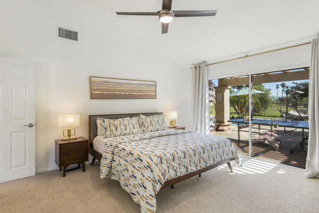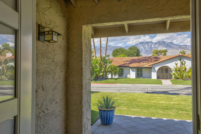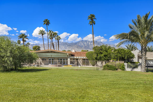 Experience the ultimate desert lifestyle on the golf course in the Tahquitz Creek Golf neighborhood. One of Palm Springs most coveted neighborhoods, this quiet enclave of Mid-Century and 70's homes is located on FEE LAND (you own) with no HOA and utility lines are underground! Sweeping GOLF COURSE and MOUNTAIN VIEWS set the scene for desert resort living. The back yard is designed for relaxation and entertaining with an expansive covered patio, sparkling saltwater pool and spa with cascading waterfall and mature fruit trees (ruby grapefruit, lemon and figs) ... perfect for quiet mornings or sunset gatherings. Step inside the sprawling home featuring high vaulted ceilings and walls of glass, open kitchen and a bar with two 28 bottle wine refrigerators. 4 spacious bedrooms and 3 updated bathrooms provide comfort for family, guests. The home is being sold TURN-KEY FURNISHED and includes OWNED SOLAR! Convenient south Palm Springs location is out of the windy area and close to downtown. Pickleball and Tennis are minutes away at Demuth Park. Hiking, casino, shopping, restaurants, Starbucks, Trader Joes, Vons, and the Palm Springs Surf Club are all very nearby. This home has been a successful vacation rental and the neighborhood is still below the cap for STR permits. Ideal primary residence, vacation retreat or income property. Don't miss your chance to own a piece of Palm Springs paradise!