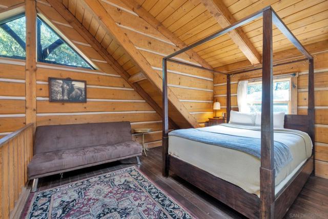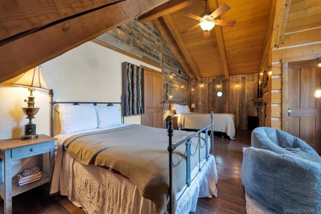 This 2-bedroom, 2.5-bath charming cabin sits on a FLAT, ALL USABLE 1.85-acre lot in PINE HILLS with a NEW ROOF AND OWNED SOLAR, offering the perfect blend of privacy, character, and income potential. With the enclosed porch and loft, the HOME COMFORTABLE SLEEPS 8 PEOPLE. Crafted with hand-hewn beams and timeless attention to detail, the home is as much a piece of art as it is a cozy mountain retreat. From the moment you step onto the welcoming covered front porch—complete with a swing bed for lazy afternoons and stargazing nights—you’ll be captivated by the warmth and charm this property radiates. Inside, the cabin features a rustic-modern vibe with an open-concept living space anchored by a stone fireplace and exposed timber beams that tell stories of old-world craftsmanship. Outside, enjoy the serenity of your surroundings—towering trees, daffodils, lilacs, and the sounds of nature provide a tranquil escape from the bustle of city life. PROVEN INCOME POTENTIAL - This cabin isn’t just a getaway—it’s a high-performing Airbnb with over 300 glowing reviews and a track record of strong financial returns. Whether you're looking to continue operating it as a vacation rental or keep it as a private retreat with income on the side, the property comes fully equipped and ready to go, including owned solar. Whether you're seeking a peaceful escape, a savvy investment, or both—this one-of-a-kind cabin delivers! Only a short drive to Julian’s charming Main Street, apple orchards, hiking trails, and local wineries, this property offers a rare mix of mountain seclusion and easy access to everything that makes Julian a beloved destination. Julian is a charming historic town nestled in the Cuyamaca Mountains, about an hour east of San Diego. Known for its small-town charm, gold rush history, and famous apple orchards, Julian is a popular getaway for those looking to enjoy fresh mountain air, scenic landscapes, and a slower pace of life. Real estate in Julian ranges from historic cabins to modern mountain retreats, making it an ideal location for those looking for a peaceful, nature-filled lifestyle with easy access to San Diego.