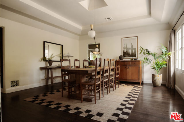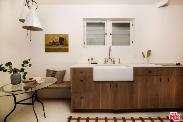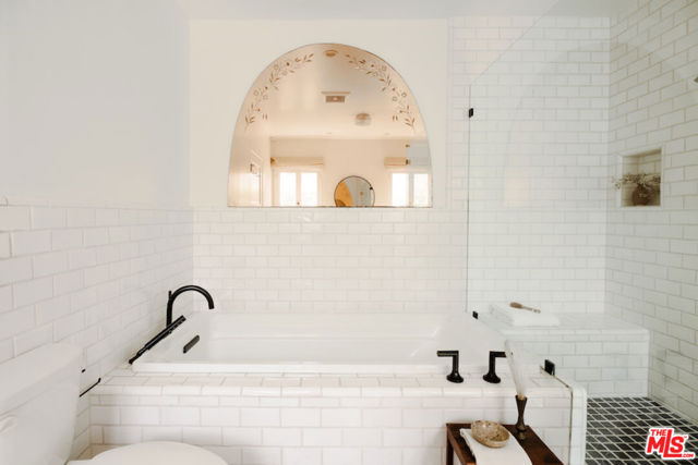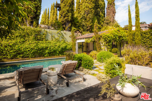 An exceptional blend of authentic Spanish character and pristine modern updates, Casa Francisca is a true gem tucked away in a serene Los Feliz neighborhood. Behind a private gate and surrounded by gorgeous landscaping designed by renowned landscape architect Wade Graham, this enchanting home offers privacy, beauty, and effortless style. Luminous with natural light, the elegant living room features graceful arches, a dramatic fireplace, and a stunning stained glass picture window, all framed by barrel ceilings and original details. The formal dining room looks out to a charming enclosed courtyard, perfect for intimate gatherings. The chef's kitchen is bright and thoughtfully designed, with open shelving, top-of-the-line appliances, and a cozy breakfast nook that offers lush, verdant views. The spacious primary suite includes a luxurious ensuite bath and a generous walk-in closet, creating a true retreat. Downstairs, the versatile casita provides an additional bedroom, bathroom, and kitchenette ideal for guests, a home office, or a creative studio. The backyard is a true private oasis. Stone paths wind through soft pebbles to a sun-drenched pool retreat, anchored by a glass-enclosed pool house draped in vibrant trumpet vines and surrounded by impeccable landscaping. An outdoor fireplace and multiple lounging areas make this an entertainer's dream, perfect for enjoying the California lifestyle year-round. Casa Francisca is a rare offering of character, comfort, and timeless beauty in one of the city's most desirable neighborhoods.