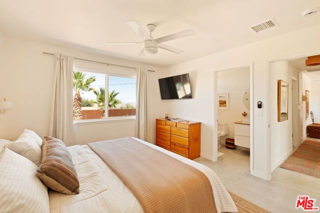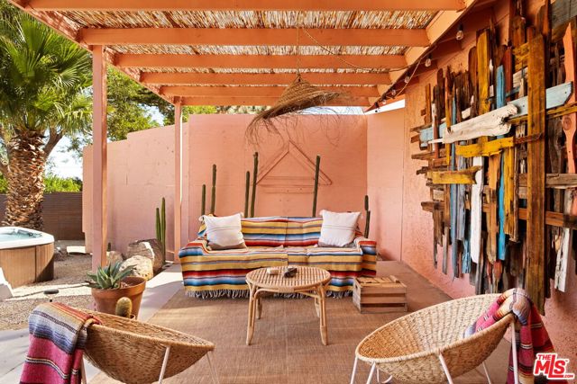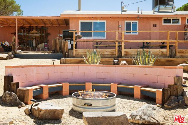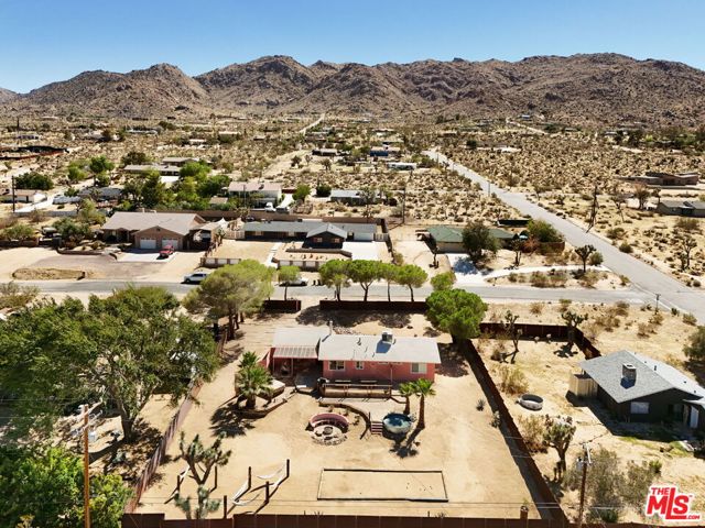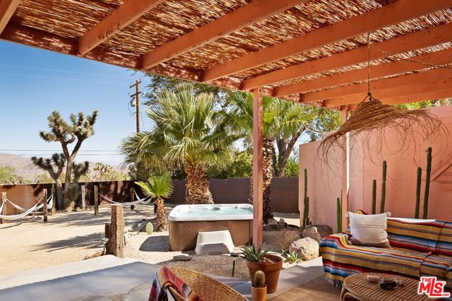 Very special Upper Friendly Hills home that is pulsating with good energy. Located off a paved road that is close to the national park entrance, hiking trail, restaurants, bars, etc, yet very private and serene once inside the property. Fully fenced with beautifully rusted metal and gate gives you ample privacy. Surrounded by mature pine trees, cactus and foliage, with incredible mountain views on both sides from every window. Polished concrete floors and malm fireplace bring the mid century elements to this ranch home. Primary bedroom with en suite. 2 additional bedrooms with ample space and storage. Brand new appliances. Large separate laundry room with new washer and dryer. Newer HVAC system with Nest thermostat and 200 amp electric panel. Newer vinyl windows and patio slider. New septic tank and automated water shut off. Freshly cool-coated roof for optimal energy efficiency. Large filtered cowboy pool and hot tub on separate areas of the property each with mature palm tree shade. Gas fire pit area surrounded by sunken seating. Hammocks and multiple lounge areas. Blazing fast fiber internet available. This home has all the vibes and has been preserved and updated.