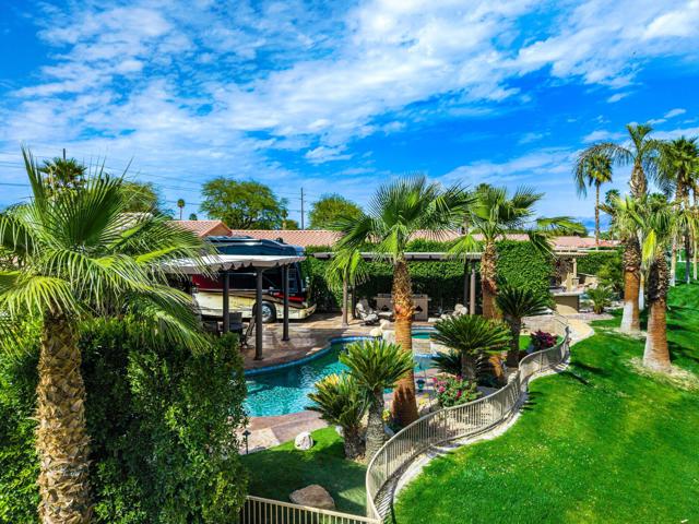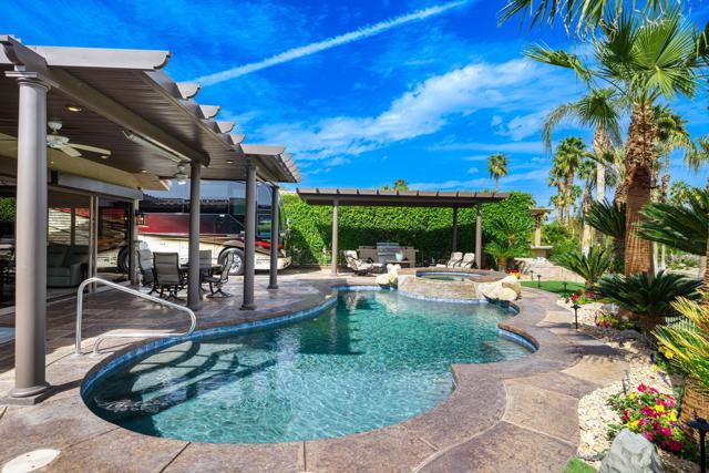 Spectacular Desert Shores Resort Property. Newer remodel + newer Guest Suite Addition! (2) Retreats + (3) 3/4 baths.2 Solid Covered Patios and Pool and Spa!One of the finest offered in this Luxury RV Resort. Class A motorhome 36'- 45' requirement.Guarded Community with clubhouse, pool, fitness, tennis, pickleball, bocce ball and buddy pad for your friends to stay.