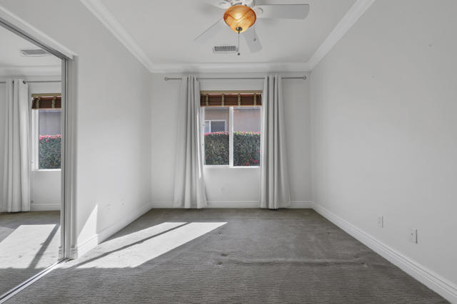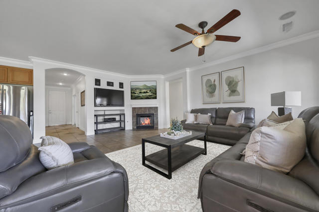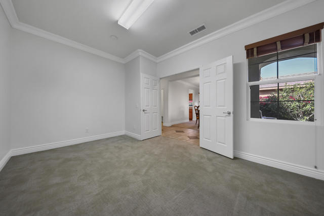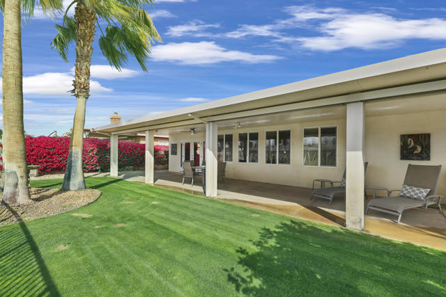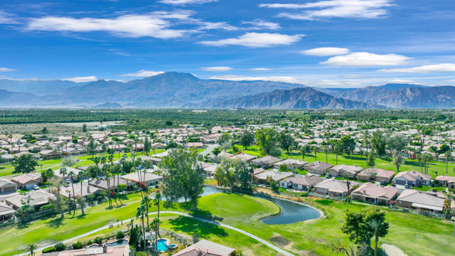 This beautiful 4-bedroom, 3.5-bath, 3-car garage home is in the exclusive Indian Palms Country Club, known for its tranquil atmosphere and resort-style amenities. Enjoy breathtaking sunsets and stunning mountain views from this west-facing home. The main living space seamlessly blends indoor and outdoor living with beautiful French doors that open to a remarkable 50-foot covered patio. This expansive outdoor area is equipped with electronic sunscreens, perfect for year-round entertaining, dining, or relaxing. The interior features custom upgrades, including elegant crown molding and upgraded light fixtures. The detached casita with its private entranceoffers endless possibilities, such as a guest suite, home office, art studio, orworkout room. Beyond the home, the Indian Palms community offers an exceptional lifestyle. Low HOA dues grant access to three swimming pools, a state-of- the-art workout facility, and well-maintained tennis and pickleball courts Indio's rental-friendly policies make this property an outstanding investment. Discover the perfect blend of luxury, privacy, and flexibility in this one-of-a-kind home. Schedule your private showing today. Disclaimer: Some pictures have been virtually staged or enhanced.