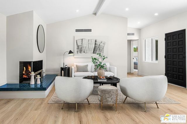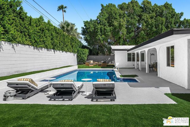 Set against a dramatic backdrop of mountain views, 1433 N Fiesta Road blends sleek updates with warm, livable spaces made for gatherings and quiet moments alike. A chef's kitchen equipped with dual sinks, a wine fridge, and an 8-burner gas range with double ovens serves as the anchor of the main living area. The main spaces are open and inviting, enhanced by ceilings rising over 10 feet. A family room and flexible office or den extend seamlessly from this core of the home. The primary suite features a spa-like ensuite bath with dual vanities and a generous walk-in rain shower complete with body jets. One guest bedroom includes a private full bath with a soaking tub, while two additional bedrooms are complemented by a full bath with dual vanities. A centrally located powder room enhances the home's livability and convenience for guests. Outdoors, a covered patio, pool, and multiple seating areas capture striking views of Mt. San Jacinto. An attached garage and pull through driveway complete this desert retreat, which offers a balance of comfort, privacy and a refined Palm Springs lifestyle.