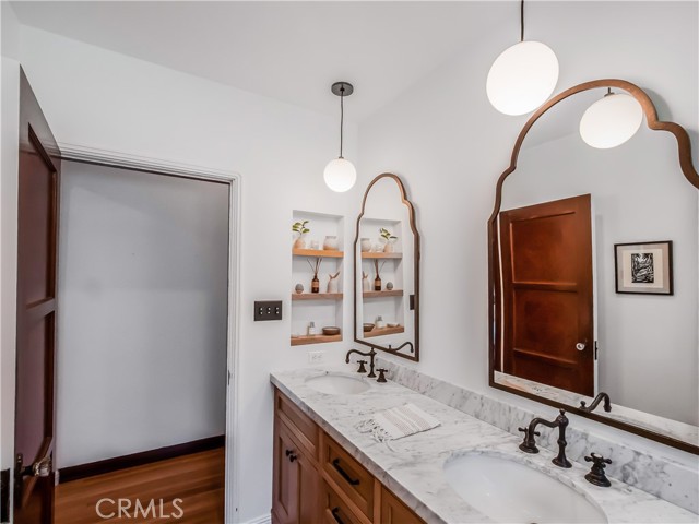 Welcome to this 1935 single-story Classic Spanish home, gracefully situated on a corner lot, on the most desired street in Bixby Knolls, Myrtle Avenue! The main residence offers 4 bedrooms and 3 baths with 1,921 sq ft., complemented by a beautifully finished 347 sq ft. garage conversion with a half bath perfect as a studio, office, or guest retreat. This home blends timeless architectural character with needed modern updates. Highlights include arched leaded-glass windows, coved and tray ceilings, a dramatic living room with a wood-beamed ceiling and fireplace, and a versatile study/office. The primary suite enjoys direct access to the backyard, creating seamless indoor-outdoor connection. A sunlit kitchen with a breakfast nook opens seamlessly for every day living. Enjoy a private front courtyard and a flagstone patio with a fire feature, perfect setting for entertaining. The 7,054 sq ft. lot offers abundant off-street parking and the garage equipped with electrical to support EV charging. Meticulously restored and maintained, this home combines classic Spanish charm with modern conveniences. A true Bixby Knolls treasure! Do Not miss out on this incredible home and living your dream! It is a MUST See for your self!