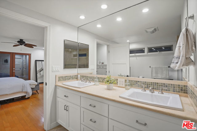 Stunning 3 bedroom home located on a serene, tree-lined street in prime Sherman Oaks! Situated in one of the best areas for schools and family life, this picturesque residence is a perfect blend of classic character and modern upgrades, offering a true oasis of serenity and privacy. Step inside to find hardwood floors, a separate living room & spacious family room (featuring a charming double-sided fireplace), along with a large primary suite with a walk-in closet. The kitchen boasts quartz countertops, ample storage, an additional breakfast nook, and stainless steel appliances. The formal dining room is another perfectly separated space, great for special occasions. French doors let in tons of natural light and lead to a lushly landscaped backyard, ideal for summer BBQs and outdoor gatherings. The detached garage has been transformed into a private living space, complete with A/C, making it perfect for an office, exercise room, or artist retreat. The home has also been equipped with Solar panels (paid off, not leased) and TWO Tesla power walls! Don't miss the opportunity to own this beautiful Sherman Oaks home!