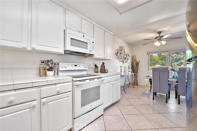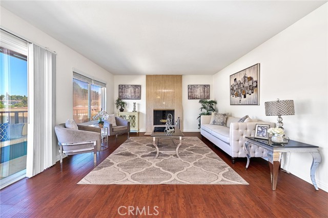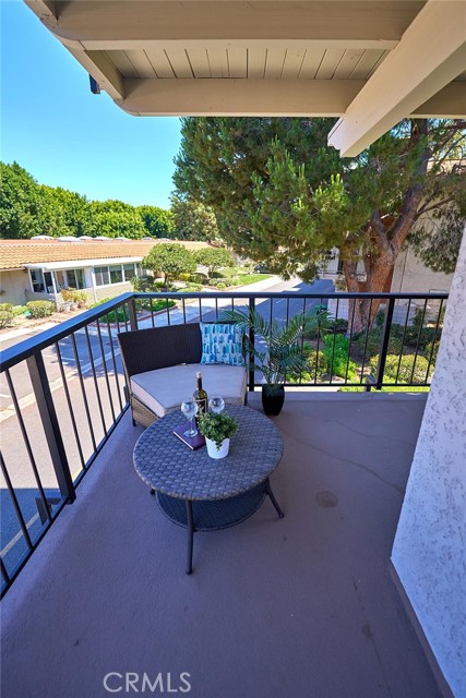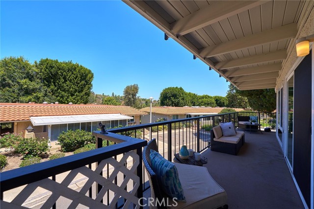 This beautifully maintained 2-bedroom, 2-bath home offers a perfect blend of comfort and style. Step into a bright and inviting space featuring fresh new paint, a spacious entry with large tile flooring, and wood-look flooring throughout the main living areas. The cozy fireplace in the living room creates a warm focal point, while dual-pane windows bring in abundant natural light. Enjoy relaxing or entertaining on the expansive private balcony, perfect for taking in the serene surroundings. The open-concept living and dining area is filled with sunlight, making this home feel airy and cheerful. Located in a tranquil, tree-lined setting with access to resort-style amenities including golf, swimming, fitness centers, and more, this home offers the best of 55+ living. Don't miss your chance to enjoy the Laguna Woods lifestyle!