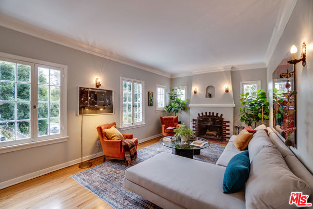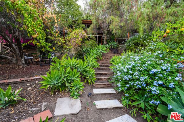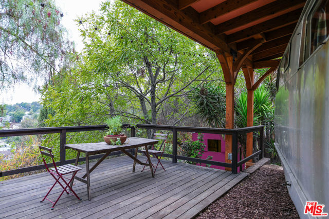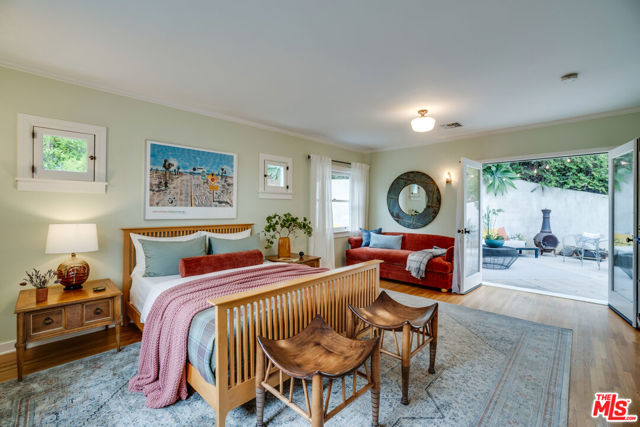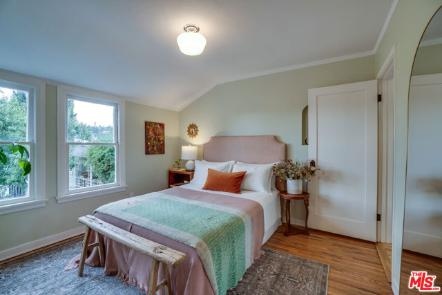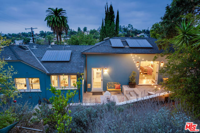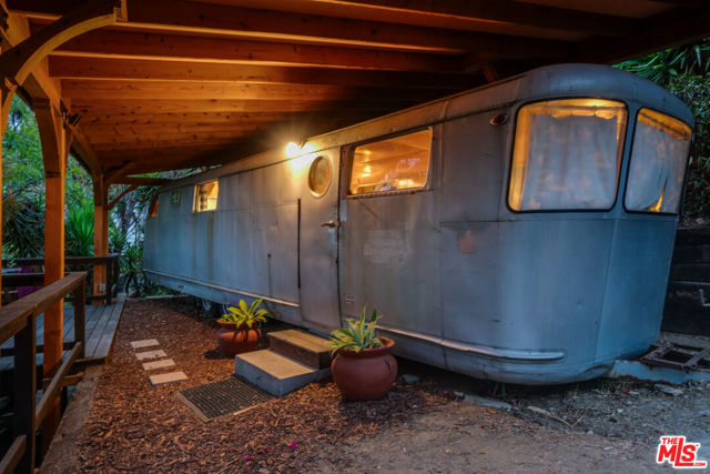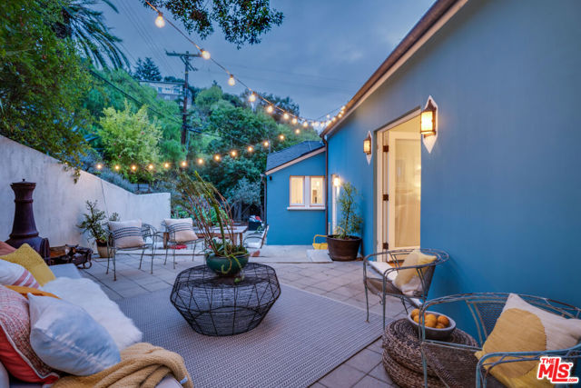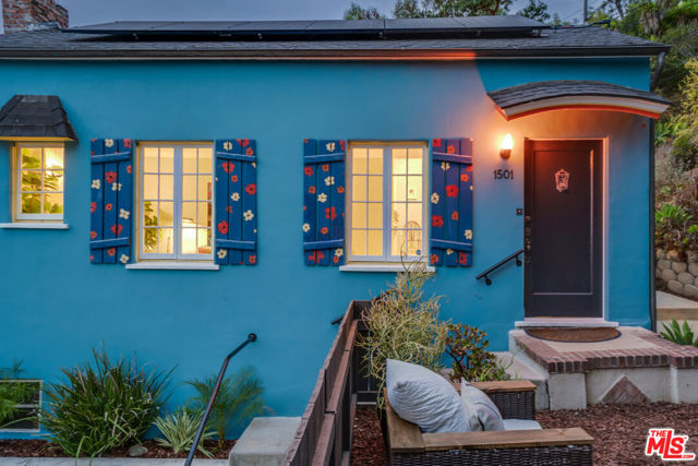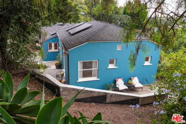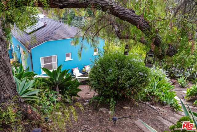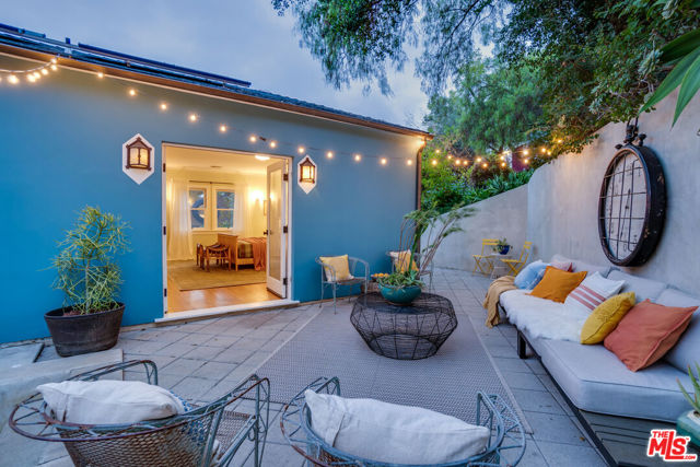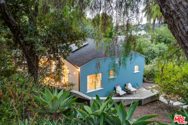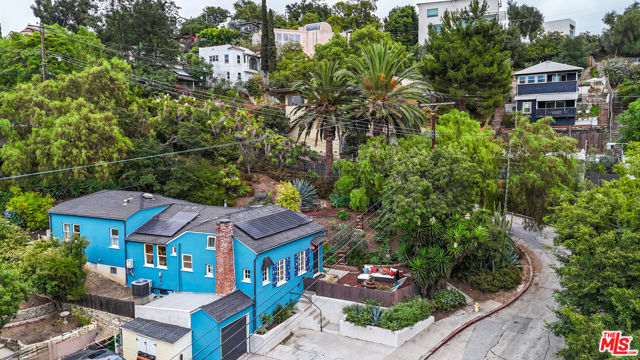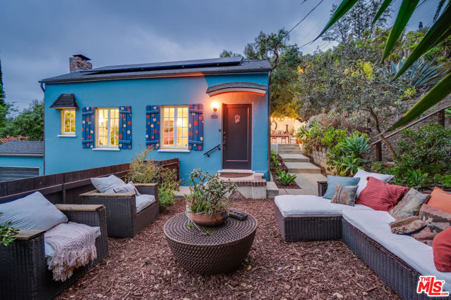 Steeped in old-school Echo Park charm, this 1925 storybook-style gem is one of those rare properties that sparks pure nostalgia for the neighborhood's creative, community-driven vibe... known for its melting pot of musicians, artists and cultures. Painted the sweetest shade of blue with handcrafted shutters, this two-bedroom, two-bath home includes a spacious primary suite... a seamless addition to the original structure. An expansive patio strung with twinkle lights offers effortless indoor-outdoor living, perfect for dining, entertaining, or relaxing under the stars. Inside, refinished original hardwood floors run throughout, a vintage kitchen has been thoughtfully updated while retaining its period details, and split-level living lends both character and separation of space. Sunshine pours in from all directions, while outside, a wraparound yard on an expansive 10,000+ sq ft lot offers rambling gardens, shady nooks, and space to play, gather, or simply soak in the wonder of Echo Park. At the back of the property, a beautifully restored 1950's vintage Spartan trailer adds another layer of possibility... a cozy creative retreat, guest haven, or successful Airbnb with its own private deck and unforgettable sunset views. A handful of blocks away, enjoy my local favorite, Valerie Echo Park, for coffee & delectable eats. Other phenomenal local spots include Canyon Coffee, Cookbook, and Bacetti Trattoria, along with the endless dining, arts, and cultural offerings on nearby Sunset Boulevard... not to mention the highly coveted Elysian Heights Elementary Arts Magnet just around the corner. This is a one-of-a-kind Echo Park offering, brimming with history, artistry, and a touch of everyday magic.