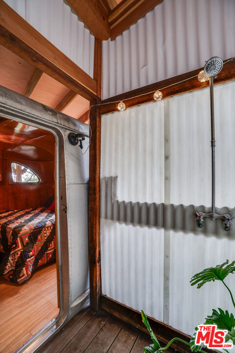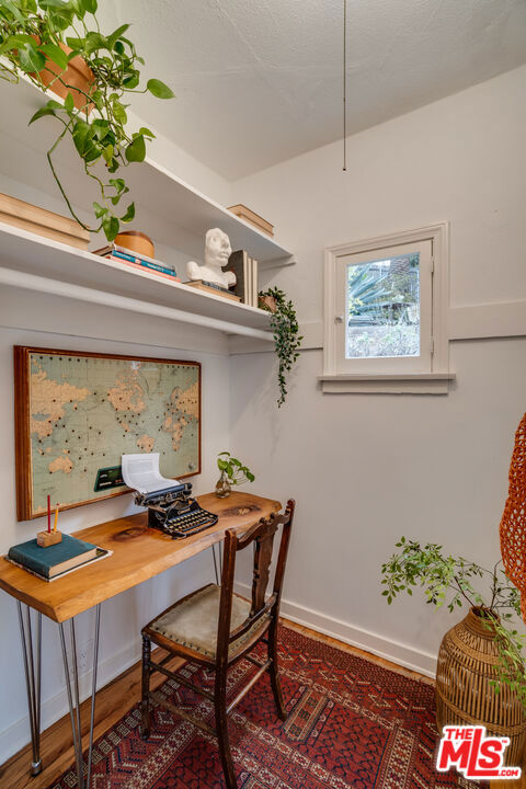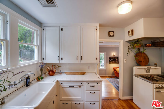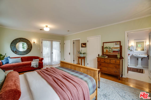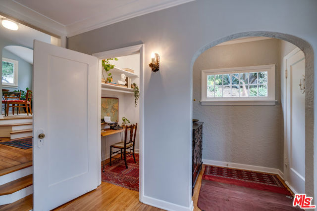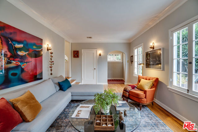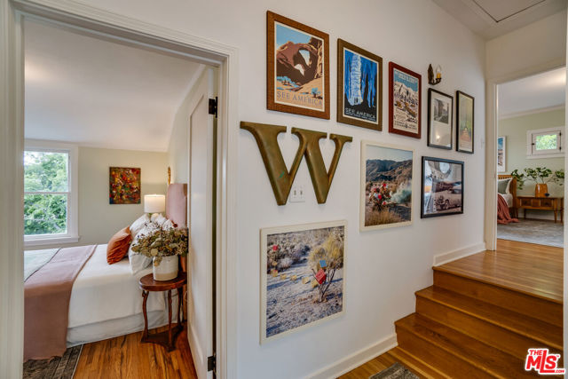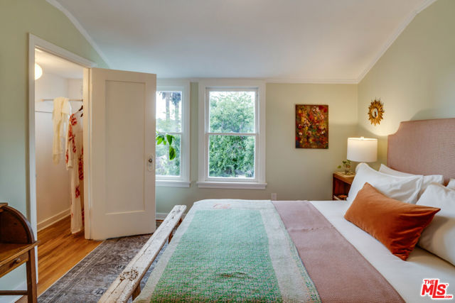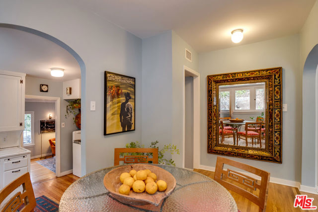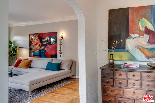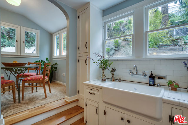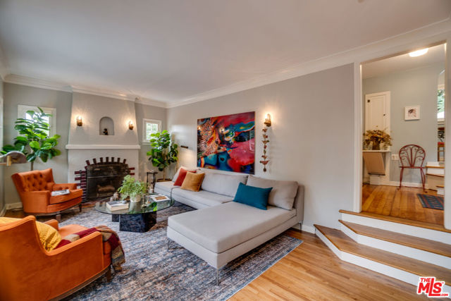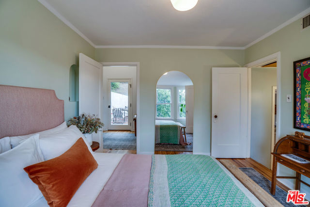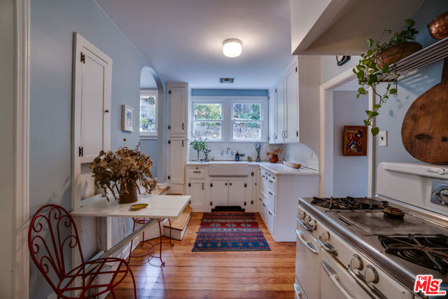 Steeped in old-school Echo Park charm, this 1925 storybook-style gem is one of those rare properties that sparks pure nostalgia for the neighborhood's creative, community-driven vibe... known for its melting pot of musicians, artists and cultures. Painted the sweetest shade of blue with handcrafted shutters, this two-bedroom, two-bath home includes a spacious primary suite... a seamless addition to the original structure. An expansive patio strung with twinkle lights offers effortless indoor-outdoor living, perfect for dining, entertaining, or relaxing under the stars. Inside, refinished original hardwood floors run throughout, a vintage kitchen has been thoughtfully updated while retaining its period details, and split-level living lends both character and separation of space. Sunshine pours in from all directions, while outside, a wraparound yard on an expansive 10,000+ sq ft lot offers rambling gardens, shady nooks, and space to play, gather, or simply soak in the wonder of Echo Park. At the back of the property, a beautifully restored 1950's vintage Spartan trailer adds another layer of possibility... a cozy creative retreat, guest haven, or successful Airbnb with its own private deck and unforgettable sunset views. A handful of blocks away, enjoy my local favorite, Valerie Echo Park, for coffee & delectable eats. Other phenomenal local spots include Canyon Coffee, Cookbook, and Bacetti Trattoria, along with the endless dining, arts, and cultural offerings on nearby Sunset Boulevard... not to mention the highly coveted Elysian Heights Elementary Arts Magnet just around the corner. This is a one-of-a-kind Echo Park offering, brimming with history, artistry, and a touch of everyday magic.