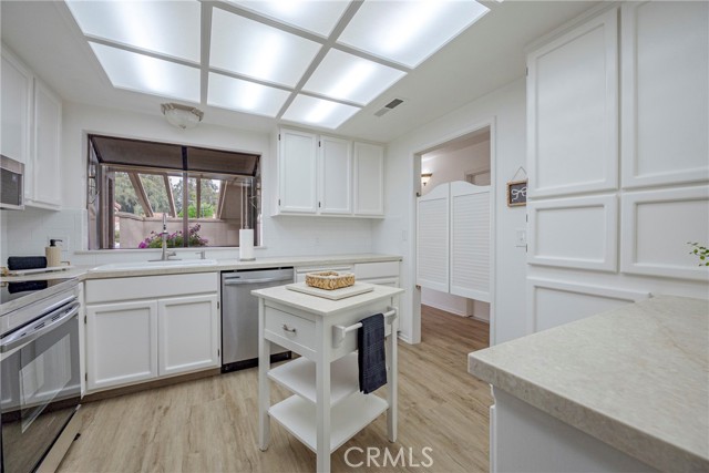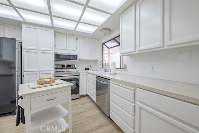 FACELIFT! New interior paint, new flooring, new baseboards, new light fixtures, new skylights, new toilets, new AC, new tile flooring in the bath, new fans, New quartz countertops, and decking in the private back yard, this 2-bedroom condo is STUNNING!