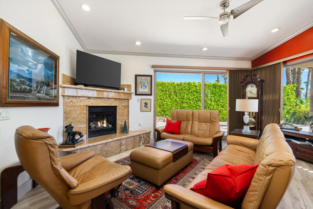 Nice property located in Desert Shores Motorcoach Resort property with Pool and Spa.Raised view deck with fireplace looks down the private lake and greenbelt.Great Room Kitchen, Retreat with Double-Sink Vanity and Walk-In Closet and Garage.Common Facilities includes Clubhouse, Library, Fitness, Pickleball, Tennis, Bocce Ball, Community Pool and Spa.