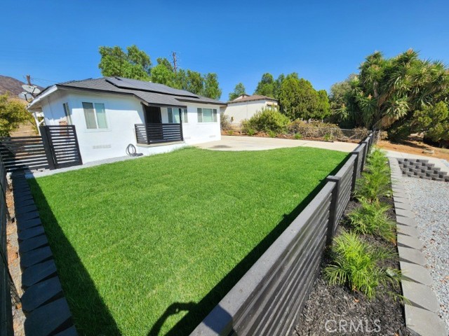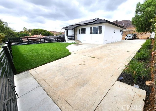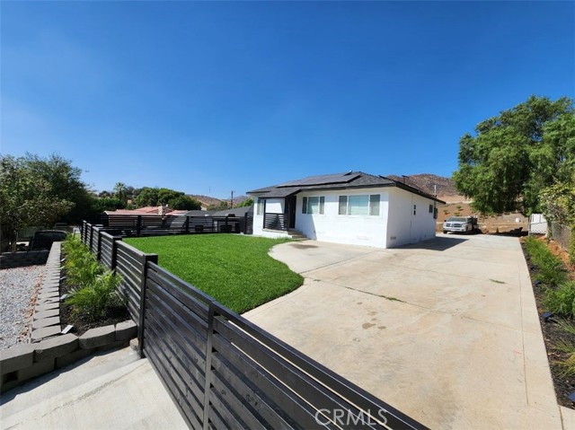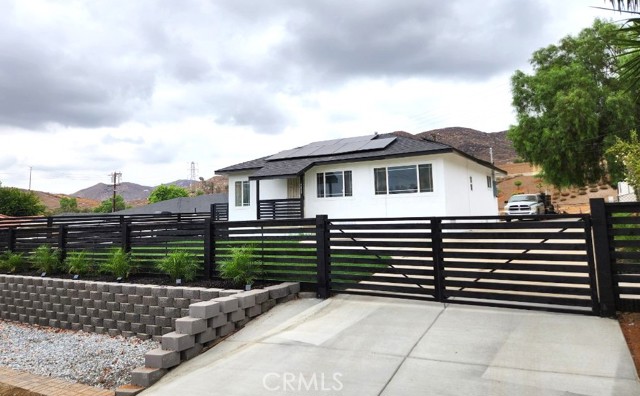 REMODELED 2-BEDROOM HOME with 2-BATHS and large yard (9500+LOT SIZE). Lovely landscaping welcomes you into this home, with new fencing and perimeter accent lighting for pygmy palms. Front yard has new sod w/sprinkler system. Step inside and find custom colors and upgrades throughout. Living room is open and offers front-yard views and great kitchen access. New cabinetry, new quartz counters, new stove & microwave, new stainless steel sink and new faucet.....all modern and in great taste. Large pantry and built-in space for refrigerator; you'll appreciate the layout! Both bathrooms are newly-tiled with new vanities, rain shower heads and shower wands. Premium flooring, new baseboards and casings, new recessed lights, new ceiling fans, upgraded electrical, HVAC system, dual-pane windows, new doors, new outlets....come see for yourself! Rear covered patio, cemented driveway to rear of property for toys/boats/RV...VERY SPACIOUS LOT SIZE. Walking distance to Patriot High School, Police Station, Ace Hardware, shopping centers AND close freeway access to 60, 91, 15 & 215; come and see this home!