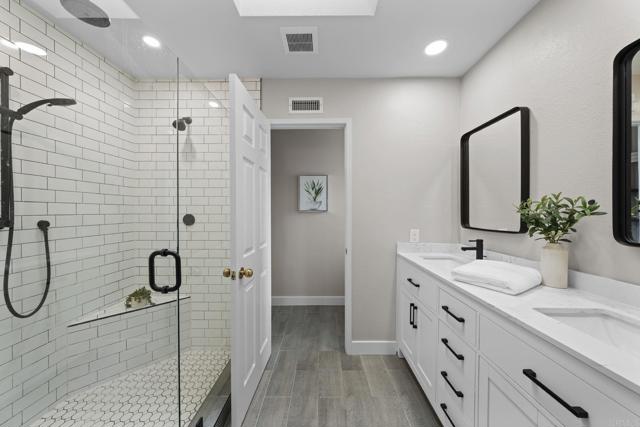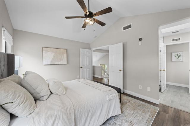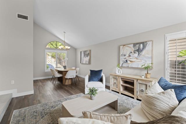 Welcome to your dream home in Rancho Peñasquitos’ sought-after Park Village community. Fully renovated from top to bottom, this residence blends modern design with everyday comfort. Inside, you’ll find wide-plank luxury flooring, quartz counters, and custom soft-close cabinetry that elevate every room. The sleek kitchen opens seamlessly to a spacious Great Room and features a bar pass-through window, perfect for weekend BBQs, game nights, and letting the coastal breeze flow through. Step outside to your private backyard oasis, complete with a sparkling pool and spa, ideal for sunny San Diego days or relaxing evenings with friends. Every detail has been thought of, from upgraded bathrooms to a tankless water heater, window shutters, and even a raised garage track for extra storage space. This home is all about lifestyle: walk to Canyon View Elementary, Canyonside Park, and the scenic Los Peñasquitos Canyon Preserve. Enjoy quick access to Hwy 56 with easy connections to I-15 and I-5. Plus, you’ll love the savings of no HOA, no Mello Roos, and top-rated Poway Unified schools.