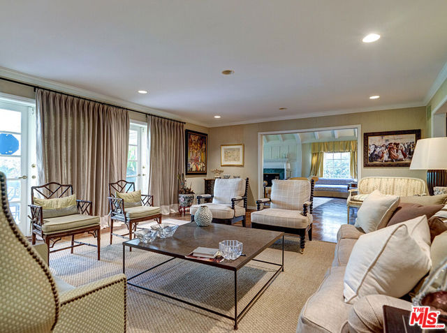 SALE SUBJECT TO BANKRUPTCY COURT APPROVAL AND OVERBID! 322 N June St., Hancock Park, Los Angeles, CA 90004 | A Distinguished English Tudor Revival Estate on the Wilshire Country Club Golf Course | Nestled in the heart of prestigious Hancock Park and situated within the distinguished Hancock Park Historic Preservation Overlay Zone (HPOZ), this captivating 1949 English Tudor Revival residence offers an exceptional blend of historic charm and coveted modern amenities. With 6,620 square feet of living space on an expansive 14,207-square-foot lot, this stately two-story home backs directly to the 15th hole of the renowned Wilshire Country Club golf course, providing serene fairway views and a unique sense of privacy. Interior Highlights: The home welcomes you through a formal entryway that sets the tone for the gracious living spaces beyond. The formal living room captivates with its beamed vaulted ceiling and fireplace, while the separate formal dining room provides an elegant setting for entertaining. Hardwood floors flow throughout the main living areas, adding warmth and character to the home's historic architecture. The residence features six bedrooms and six bathrooms thoughtfully distributed across two floors. The impressive primary suite is a true retreat, complete with a private sitting area, balcony overlooking the golf course, dual his-and-hers bathrooms (including a luxurious her-side bathroom with sitting room, vanity, and tub/shower combination), and generous closet space. Three additional bedrooms on the second floor each feature en-suite bathrooms, while another bedroom offers custom built-in shelving. A unique feature of this home is its dual kitchen setup, complemented by two separate living areas, offering exceptional flexibility for multi-generational living or live-in staff accommodations. The main kitchen includes an island with granite countertop and sink, double oven, and tile flooring with an adjacent seating area. Additional interior amenities include a main-floor office, basement storage, and central heating and air conditioning throughout. Outdoor Living: The lush grounds showcase Southern California indoor-outdoor living at its finest. An in-ground pool and spa provide the perfect backdrop for relaxation and entertaining, while mature landscaping creates a private oasis. A covered patio area extends the living space outdoors, ideal for al fresco dining with views of the manicured golf course beyond. Location & Lifestyle: 322 N June Street enjoys one of Hancock Park's most desirable locations north of Beverly Boulevard, south of Melrose Avenue, east of Highland Boulevard, and directly adjacent to the Wilshire Country Club. This exceptional property offers a rare opportunity to own a piece of Los Angeles history while enjoying the amenities of luxury living, all in one of the city's most sought-after neighborhoods. The combination of historic architecture, substantial square footage, golf course setting, and prime Hancock Park location creates an offering of uncommon distinction. Note: The property features driveway parking with carport (no enclosed garage). As with many historic homes, there are opportunities for selective updates to personalize the residence to contemporary tastes.