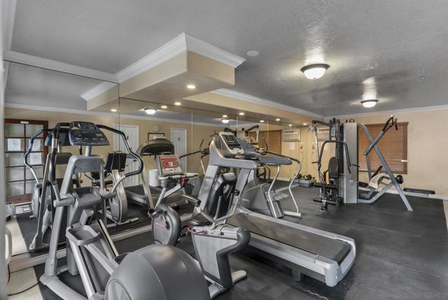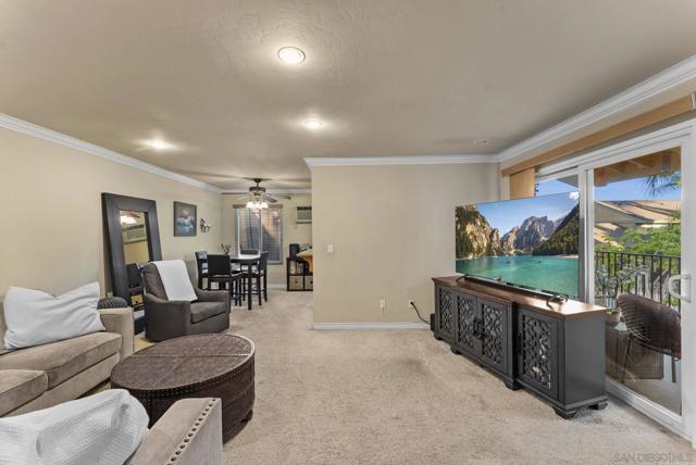 Looking to call the community of La Mesa "Jewel of the Hills" home? Check out this upper level corner unit 1bed/1bath 760sqft condo with a private entry, balcony with view of the pool area & 2 assigned parking spaces! Step inside the living room with crown molding, recessed lighting & slider to the outdoor space to unwind & relax. Separate dining area with ceiling fan and wall A/C unit. The kitchen features warm maple cabinets, granite counters, & a window over the sink to let the natural light in. SS appliances w/electric stove, dishwasher, microwave, & fridge. Well sized bedroom with west facing window lets the sun shine in as you enjoy the sunset view. Interior French doors open to a bonus walk in closet/laundry room area (W/D inc) off bedroom that leads into the dual entry bathroom, this provides access to the bathroom from the bedroom separate from the living space for guests. Dual pane windows & attic space for ample storage. The Williamsburg Square complex offers wonderful amenities including well kept lush grounds, gym, men & women's sauna & showers, a clubhouse with kitchen that can be reserved to host gatherings, & lot for visitor parking behind the complex. Low HOA fee of $355/month inc water, trash, & sewer. Enjoy the high walkability of this central location just S of the 8 fwy on a cul-de-sac street. Near local favorites like Next Door Wine Bar, Himalayan Cuisine, Better Buzz Coffee, Carnitas Uruapan, & Riviera Supper Club. Short Distance to La Mesa Village, Cowles Mtn, Lake Murray, Grossmont Center & Hospital, Costco & SDSU. Easy access to public transit. Units in this complex do not come on the market often! Great way to step into your path of homeownership or add to your investment portfolio!