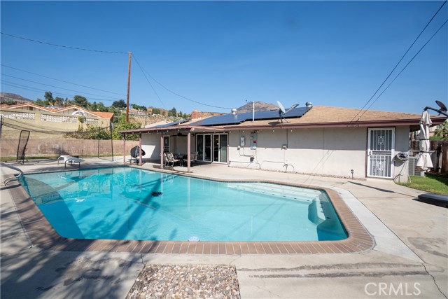 Welcome to this charming and well-maintained 3-bedroom, 2-bath home located in a quiet and desirable neighborhood of San Bernardino. Situated on an over 10,000 sq ft corner lot, this property offers incredible space, privacy, and exceptional curb appeal. Inside, you'll find a bright and functional layout featuring a spacious living area, a nicely updated kitchen, and generously sized bedrooms. The home is perfect for both everyday living and entertaining. Additional highlights include solar panels, central HVAC, and plenty of natural light throughout. Step into the backyard and enjoy your own private retreat with a sparkling pool, above-ground spa, and ample patio space—perfect for relaxing or hosting gatherings. The large lot also offers potential for future additions, great for entertaining and include a 2-car garage, wide driveway with additional parking, and a fenced yard for privacy. Conveniently located near schools, shopping, parks, and easy freeway access. This home has it all—space, comfort, and lifestyle. Don’t miss out on this amazing opportunity!