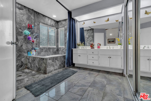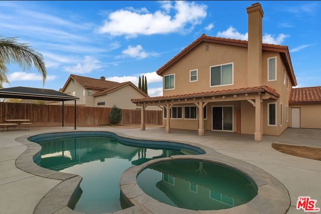 One more gorgeous home in the heart of Palmdale! Perfect for a growing family, this property offers a modern layout designed for both comfort and style. As you enter, the cozy living room welcomes you with direct access to the dining area, creating a seamless flow for gatherings. The kitchen boasts spacious countertops, beautiful cabinetry, and an open design that connects to a large family room perfect for entertaining or relaxing. From here, step outside to enjoy the sparkling swimming pool with a jacuzzi waterfall, ideal for sunny California days. A standout feature: ceramic flooring has been newly installed throughout the entire home, giving every room a fresh, sleek, and airy look. Upstairs, the master suite feels truly regal, offering a spacious retreat complete with a separate bathroom featuring a soaking tub, standing shower, and private toilet area. Each bedroom is generously sized, filled with natural light, and upstairs also includes a versatile family area for added living space. This home is move-in ready, full of upgrades, and a must-see! Some images have been digitally enhanced with artificial intelligence to show the potential of the spaces. Not all enhancements reflect the property's current condition.