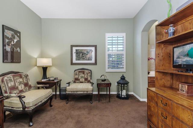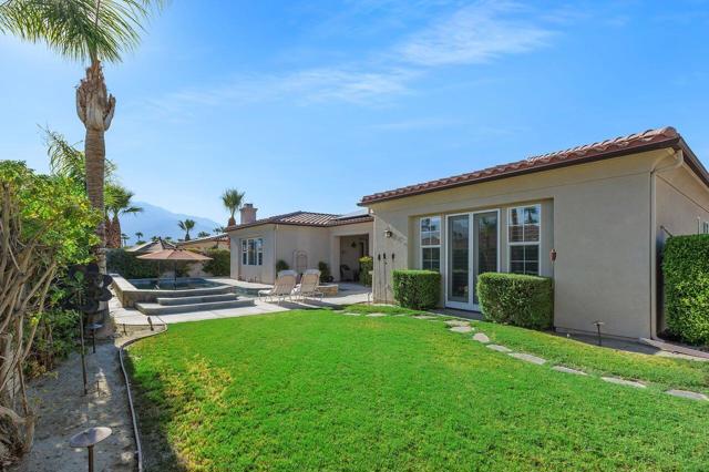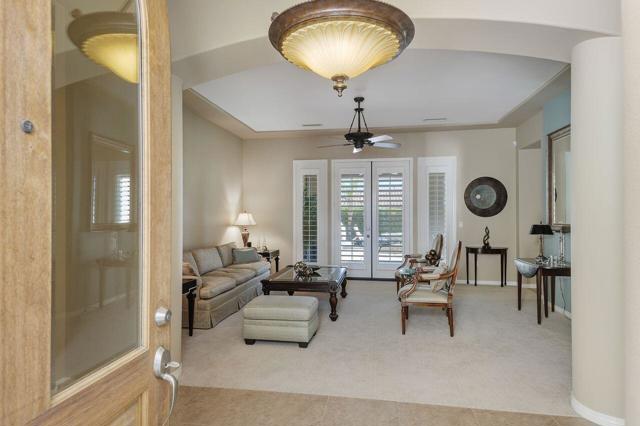 Behind the gates of St. Augustine in Rancho Mirage sits this spacious 3,650 sq ft home on a large corner lot. Enter through a private courtyard with fountain into a bright living room with French doors opening to the covered patio and pool. The home features a formal dining room, an open kitchen with island and walk-in pantry, a family room with fireplace, and a wet bar. The primary suite includes French doors to the yard, a spa-like bath, and an oversized walk-in closet. Two guest bedrooms share a Jack-and-Jill bath, plus there's an office with outdoor access.The backyard is designed for entertaining with a covered patio, BBQ island, pool with beach entry, spa, and firepit. Additional perks include OWNED SOLAR, high-efficiency Trane systems, and air-conditioned garages. A perfect blend of comfort and entertaining in a sought-after community.This home's layout and features make it an ideal choice for those seeking a comfortable and functional living space with opportunities to enjoy the outdoors. The well-maintained condition of the property ensures a move-in ready experience for the next owner.Please call Hal Hartley at 858-254-0229 for showing instructions.