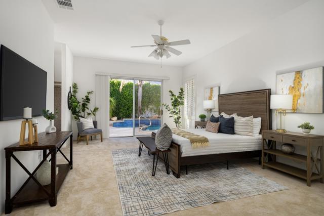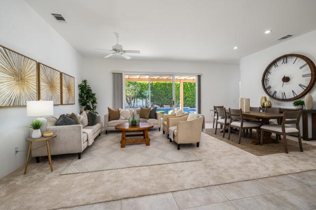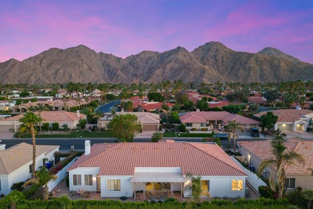 An Exceptional Offering in Indian Wells Country Club. This residence is a rare find within the prestigious Colony neighborhood, located behind the gates of Indian Wells Country Club.Featuring 4 bedrooms, and 2,909 sq. ft. of open living space, this home is designed for both comfort and privacy and entertainment. The split-bedroom floor plan places the spacious primary suite with en-suite bath on one side of the home, while the secondary bedrooms are on the other, making it ideal for hosting guests.The great room design offers an open flow from the living room directly to the pool and outdoor entertaining spaces, creating a dramatic connection between indoors and outdoors.Just off the kitchen, a spacious family room with a fireplace provides a warm and inviting setting for casual gatherings. The gourmet chef's kitchen features a center island and pantry, serving as the perfect hub for everyday living and entertaining.The backyard is ultra-private with a sparkling pool and spa, built-in BBQ, and multiple elevated seating areas. One of the terraces captures breathtaking mountain views.Additional highlights include a three-car attached garage with ample space for vehicles, a golf cart, or outdoor gear.As an Indian Wells resident, you'll enjoy exclusive perks such as discounted golf at the Indian Wells Golf Resort, 10% off dining at local restaurants, and two complimentary tickets to the world-famous BNP Paribas Tennis Tournament. Adding to the value, the home is located behind the Indian Wells Country Club guard gate with an HOA of only $65 per month.This move-in-ready property blends luxury, comfort, and the desert lifestyle. Truly an exceptional offering in today's market.