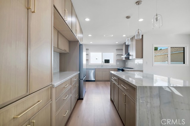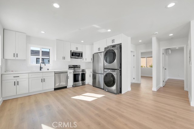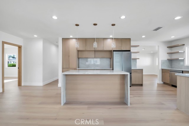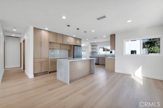 This remarkable property features a total of three units: a main house at the front and a two-story accessory dwelling unit (ADU) at the rear. The first floor of the ADU serves as the second unit, while the top floor functions as the third unit! The primary residence, located at 6156 Colbath, boasts three bedrooms and two bathrooms across 1,538 square feet of living space. The entire property has been meticulously upgraded with high-end finishes! As you step inside, you are welcomed by stylish laminate flooring and recessed lighting that flows throughout the home. The open-concept design seamlessly connects the living room and kitchen, with the living area featuring a bar perfect for entertaining guests. The kitchen is a chef's dream, showcasing a stunning quartzite island with a waterfall edge, elegant light fixtures, and ample cabinetry. The bathrooms are equally impressive, complete with beautiful vanities featuring his-and-hers sinks, dual shower heads, and textured shower walls. In one corner of the house, you'll find a cozy family room that also houses a convenient laundry space equipped with a washer and dryer. The two-story ADU at 6154 and 6154 1/2 is brand new and offers two identical units, each measuring 800 square feet with two bedrooms and two baths. Both units feature a similar open floor plan that harmoniously combines the living room, dining area, and kitchen. The kitchens are outfitted with top-tier finishes, including quartz countertops and attractive cabinetry. Each ADU is also equipped with its own in-unit washer and dryer. The bathrooms in these units are designed with beautiful vanities, textured shower walls, and dual shower heads. The top floor unit even boasts its own private patio for relaxation. This property presents endless possibilities! Whether you're searching for a modern multi-unit home for extended family or an upgraded rental property to enhance your investment portfolio, this is an exceptional opportunity. Don't let this listing slip away; properties like this are rare in the current market!