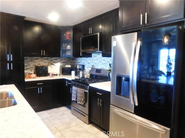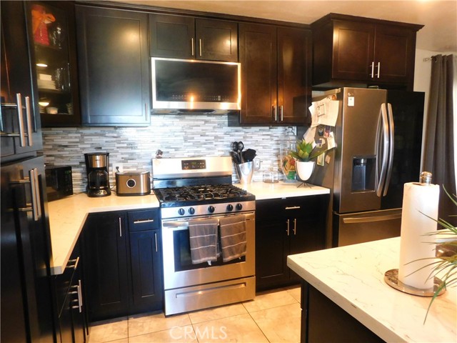 Beautifully updated home. Separate living room and family room with a fireplace. Kitchen has quartz countertops and newer appliances. Loads of storage. Great backyard with large covered patio, built in barbeque, and completely fenced. All you need to do is unpack! See this home today!