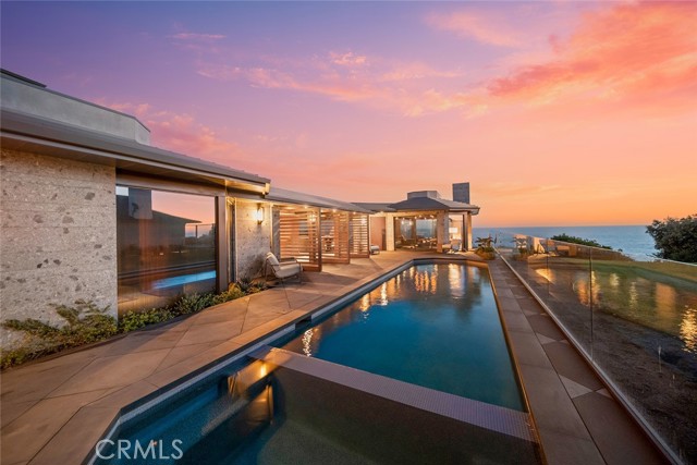 One of a kind, soft contemporary oceanfront estate in the prestigious guard-gated community of Three Arch Bay. This newly completed residence overlooking the ocean and 3 arches in Whale Rock embodies the pinnacle of modern Laguna Beach living. Watch the waves breaking on the beach with romantic sunsets and Catalina Island views. Featuring four bedrooms and four bathrooms, the home was finished just six months ago. With vision, planning, and flawless execution this transformation was a masterful collaboration between architect CJ Light, interior designers Ron Meal and Jeffery Maynard, and builder Dave Shipp, with the region’s most skilled artisans bringing each element to life. Every detail has been meticulously considered, every material thoughtfully selected, and every space designed with purpose. The architecture balances clean, modern lines with natural, organic textures that warm the interiors and create a harmonious flow. Custom walnut ceilings, cork wall treatments, and finely crafted woodwork add richness and depth. Oversized pivot doors, seamless systems, and discreet integrated storage solutions enhance everyday living without compromising style. Imported finishes include striking 30-inch Italian Cheppo stone tile walls and Rosa marble in the baths, elevating the home’s refinement. The chef’s kitchen is a showcase of design and function, anchored by a full Gaggenau appliance suite, including a five-burner cooktop, integrated refrigerator, and “The Gallery” sink. Custom Luna cabinetry and stonework frame the space, offering both beauty and utility. Multiple climate zone, four systems in total ensure personalized comfort, while smart-home automation, oversized Albertini windows imported from Italy, and precision lighting create a lifestyle that is as effortless as it is sophisticated. Outdoors, the property is positioned directly above the Pacific, where a private pool and spa blend seamlessly with endless ocean views. Double-gated entry provides the utmost privacy, while the meticulously maintained roof and integrated mechanical systems make efficient upkeep. More than just a residence, it is a coastal statement piece crafted to be lived in, admired, and cherished for generations to come. Situated minutes from Laguna Beach vibrant village, boutique shops, acclaimed restaurants, Dana Point Harbor and world renowned beaches.