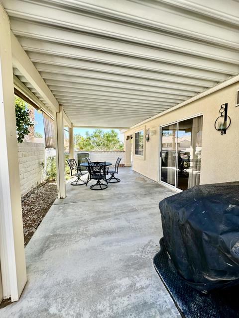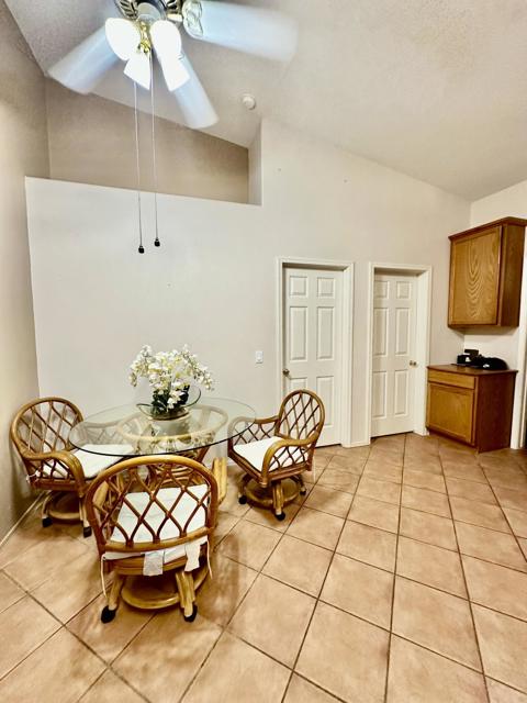 Golf Course Living - 2 Bedroom, 2 Bath HomeEnjoy golf course views every day from this charming 2-bedroom, 2-bathroom home with an inviting open layout. The spacious living area flows seamlessly into the dining space and kitchen, creating the perfect setting for both relaxing and entertaining. The kitchen offers ample cabinet storage, stainless steel appliances, and a convenient breakfast bar.The primary suite features a private bath and walk-in closet, while the guest bedroom and second full bath provide comfort and flexibility for family or visitors. Step outside to the extended covered patio and take in the peaceful setting overlooking the fairway--ideal for morning coffee or evening gatherings.Additional highlights include vaulted ceilings, tile flooring, ceiling fans throughout, an attached single car garage, and easy-care desert landscaping. Located in a desirable golf course community, this home combines comfort, convenience, and lifestyle.