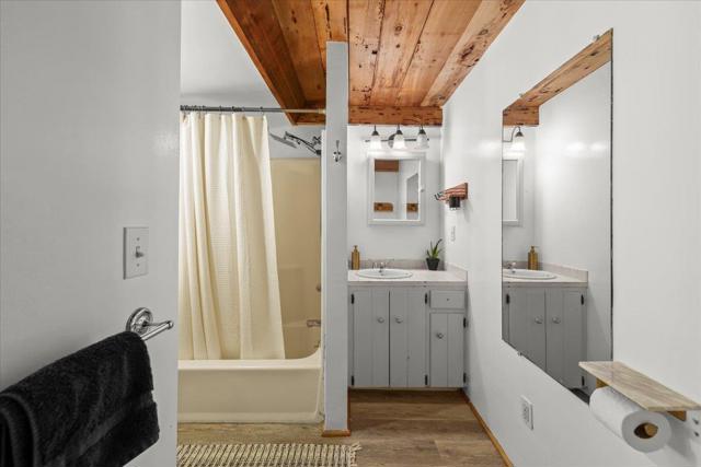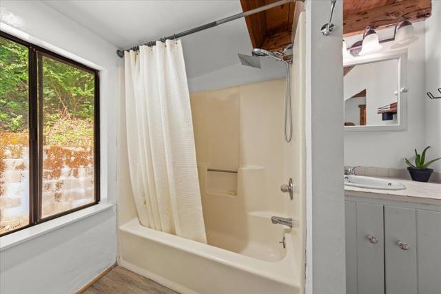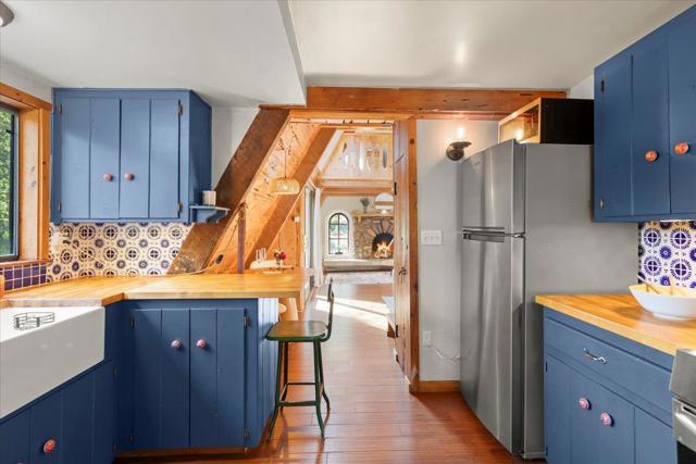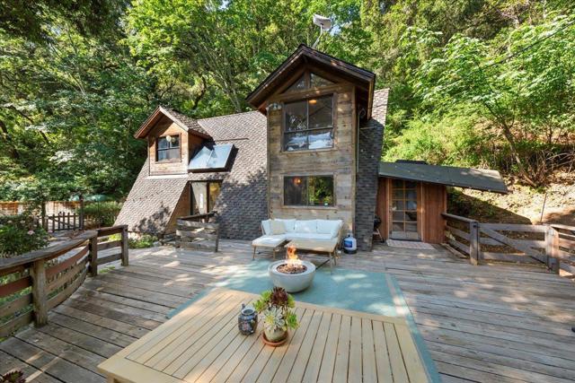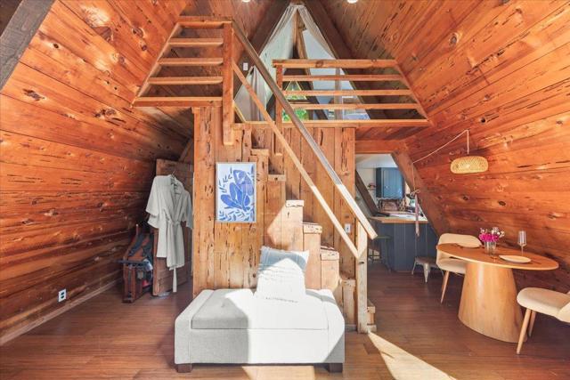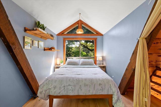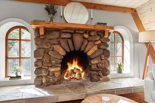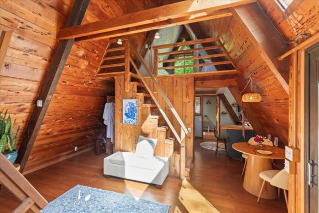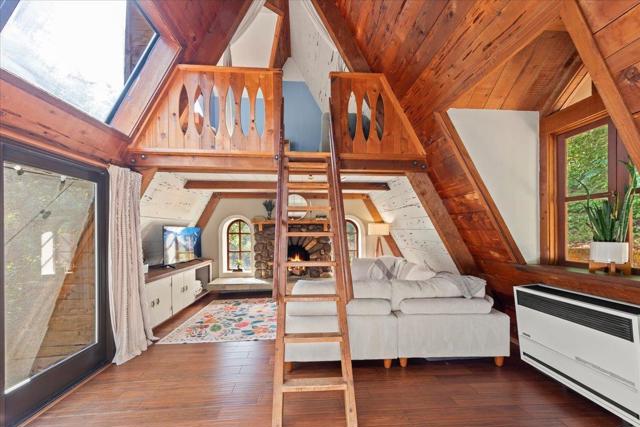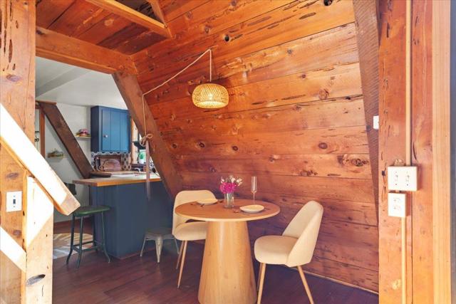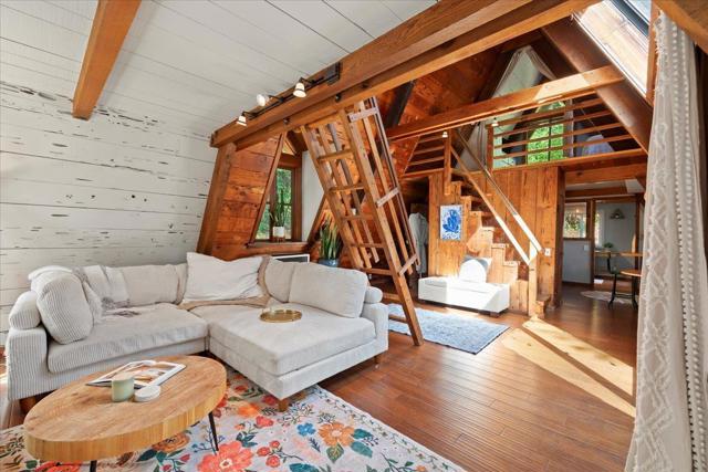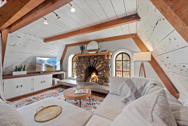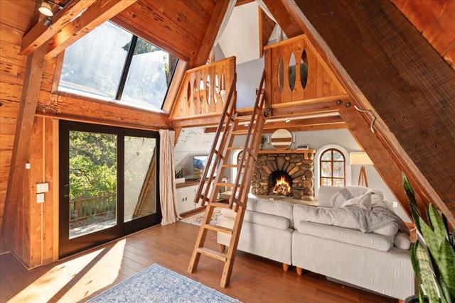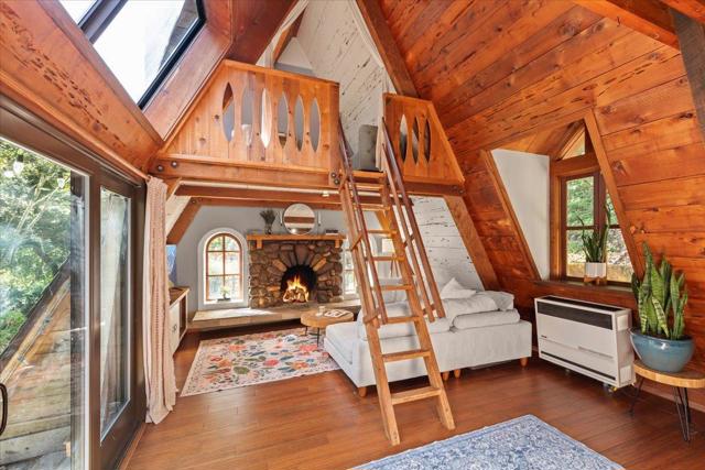Tucked into 2.5 hillside acres next to Garland Park's Kahn Ranch, this fairytale 2-bedroom, 1-bathroom A-frame cottage blends rustic charm with modern comfort. A stunning stone fireplace, unique pecky cedar, and vaulted ceilings set the warm tone inside, with skylights and an open layout connecting the farmhouse kitchen, dining nook, and living area. Loft-style bedrooms, a separate laundry/mudroom, and thoughtful updates make this home both charming and functional. A lifetime shingle roof adds lasting value and peace of mind. Outside, enjoy an enchanting garden, well-lit driveway, and a freshly graveled parking area. The expansive deck is perfect for outdoor dining, morning sun, or relaxing in a hammock. A newly built private trail leads to mountain views. Just minutes from a seasonal waterfall, creek, and the Village yet secluded enough for true nature lovers this is a peaceful, one-of-a-kind retreat.
