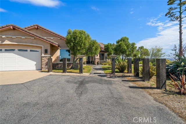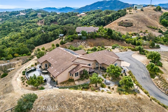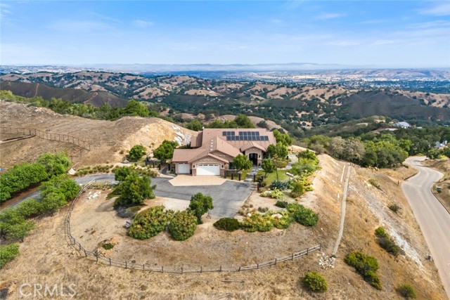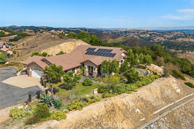 Set high above the Central Coast in the prestigious Oak Ridge Estates, this spectacular executive estate sits on one of the community’s highest lots, offering some of the most commanding views in Atascadero. From sunrise to sunset, enjoy unobstructed 360-degree vistas of the Santa Lucia Ridge, rolling valleys, and even distant glimpses of the Pacific Ocean. With its elevated setting, expansive layout, and resort-style amenities, this home was designed to deliver both luxury and livability. Inside, soaring vaulted ceilings, oversized rooms, and an open yet versatile floor plan create a sense of scale and sophistication. Travertine and hardwood floors flow throughout multiple gathering spaces, including a dramatic sunlit great room, a cozy family room with fireplace, a formal dining room, and a charming breakfast nook. At the heart of the home, the gourmet kitchen invites both entertaining and everyday living, with a large island and breakfast bar, abundant cabinetry, expansive counter space, and even a built-in desk for added convenience. The primary suite is its own private sanctuary, complete with a fireplace, custom built-ins, dual walk-in closets, and a spacious sitting area perfect for unwinding. The spa-inspired bath, with its generous proportions, completes the retreat-like experience. Smart home features add peace of mind and efficiency, including Nest temperature control, a whole-house fire suppression system, an EV charging station, and an owned solar array with battery backup. Equally impressive, the outdoor spaces are crafted for entertaining and relaxation. Expansive patios and terraces extend the living areas outside, with a fully equipped outdoor kitchen, BBQ, wet bar, and a stargazing patio with spa that takes full advantage of the breathtaking night skies. Thoughtful exterior lighting enhances the natural beauty of the surroundings while minimizing light pollution. Mature, low-maintenance landscaping complements the property’s coastal-influenced microclimate, offering year-round comfort and enjoyment. Blending privacy, scale, and some of the very best views on the Central Coast, this Oak Ridge Estates residence is a rare opportunity to own an executive home where every detail has been designed for comfort, elegance, and unforgettable living.